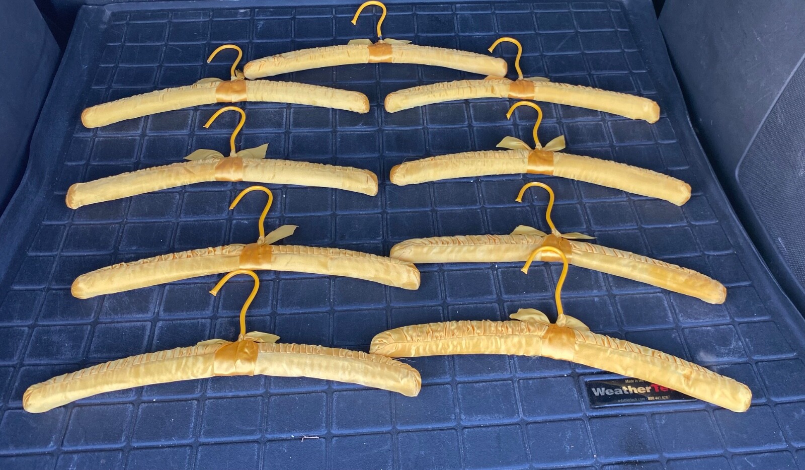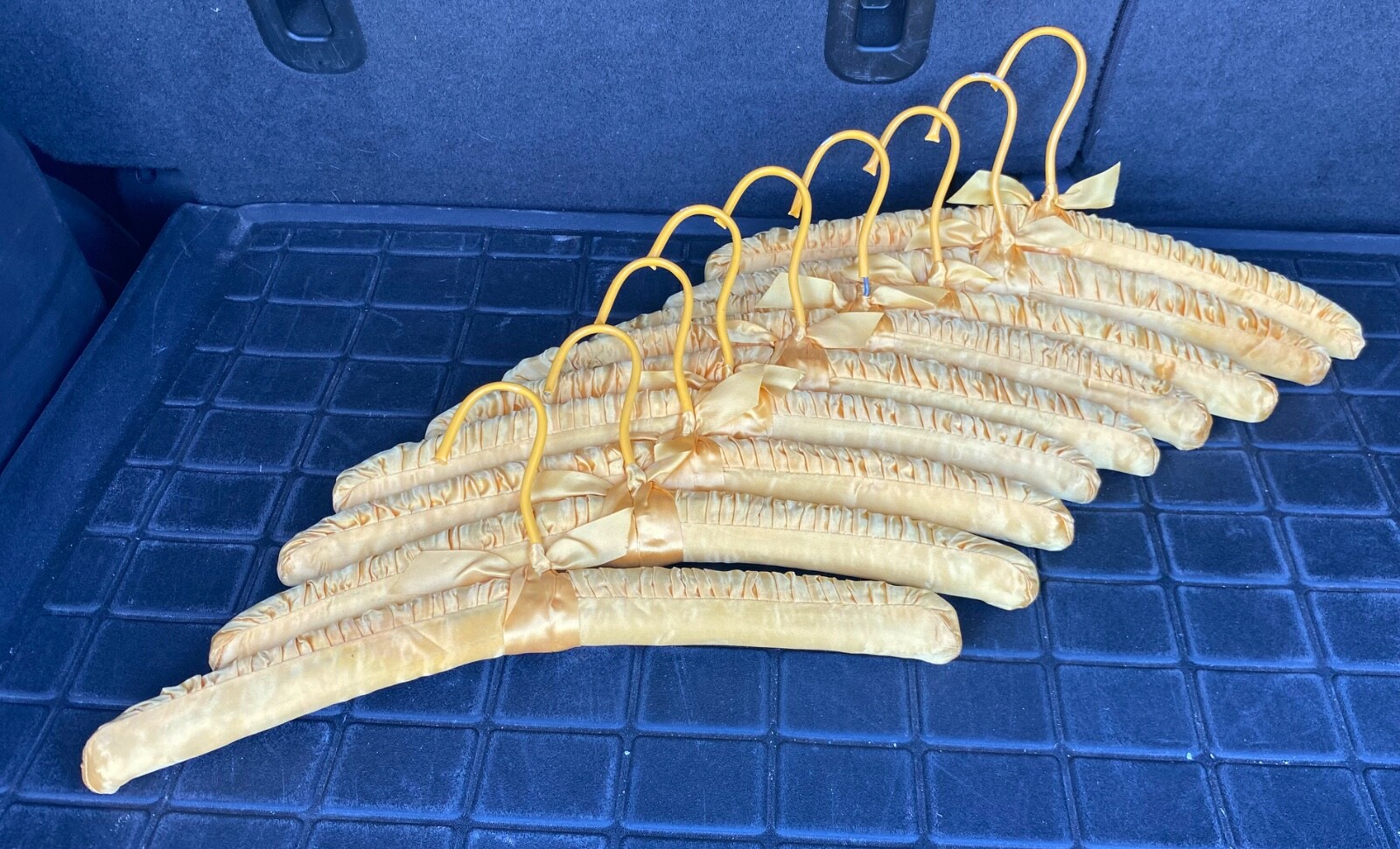 Vintage Padded Satin Lingerie Boudoir Clothes Hangers Yellow Lot of 9