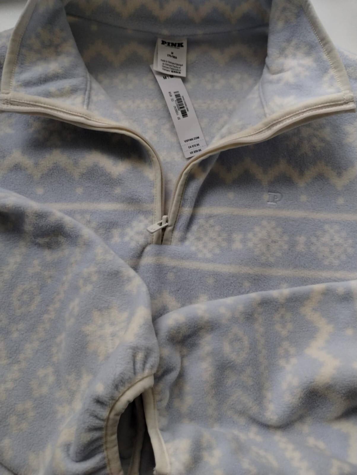 как выглядит Victorias Secret PINK Micro Fleece Half-Zip Jacket Brand New Size M Blue/White фото