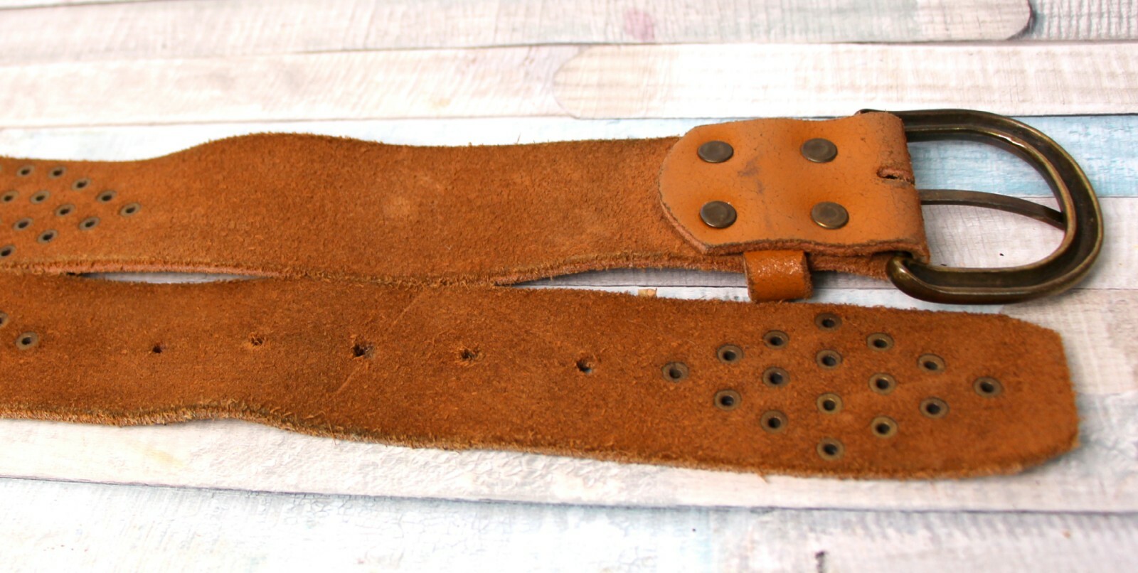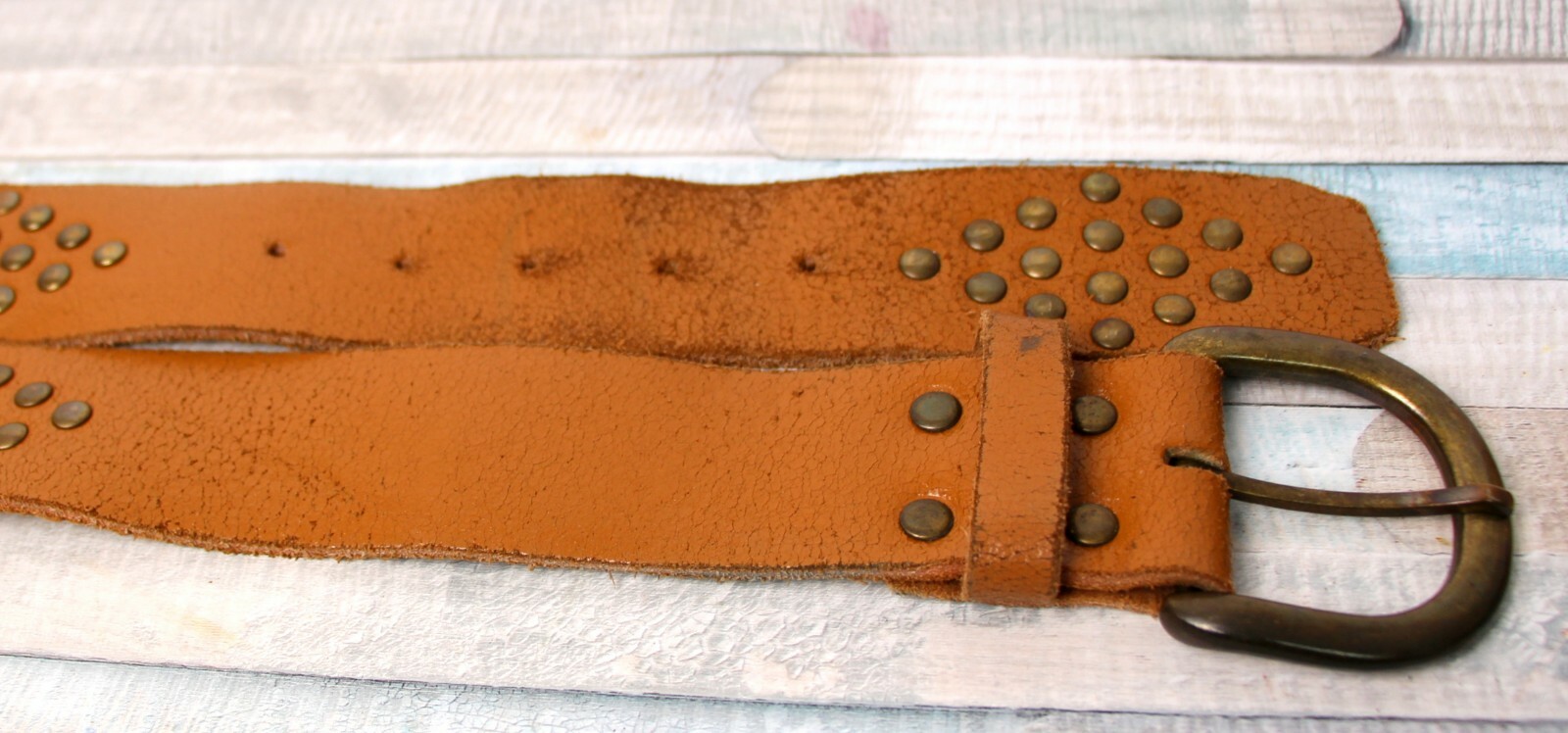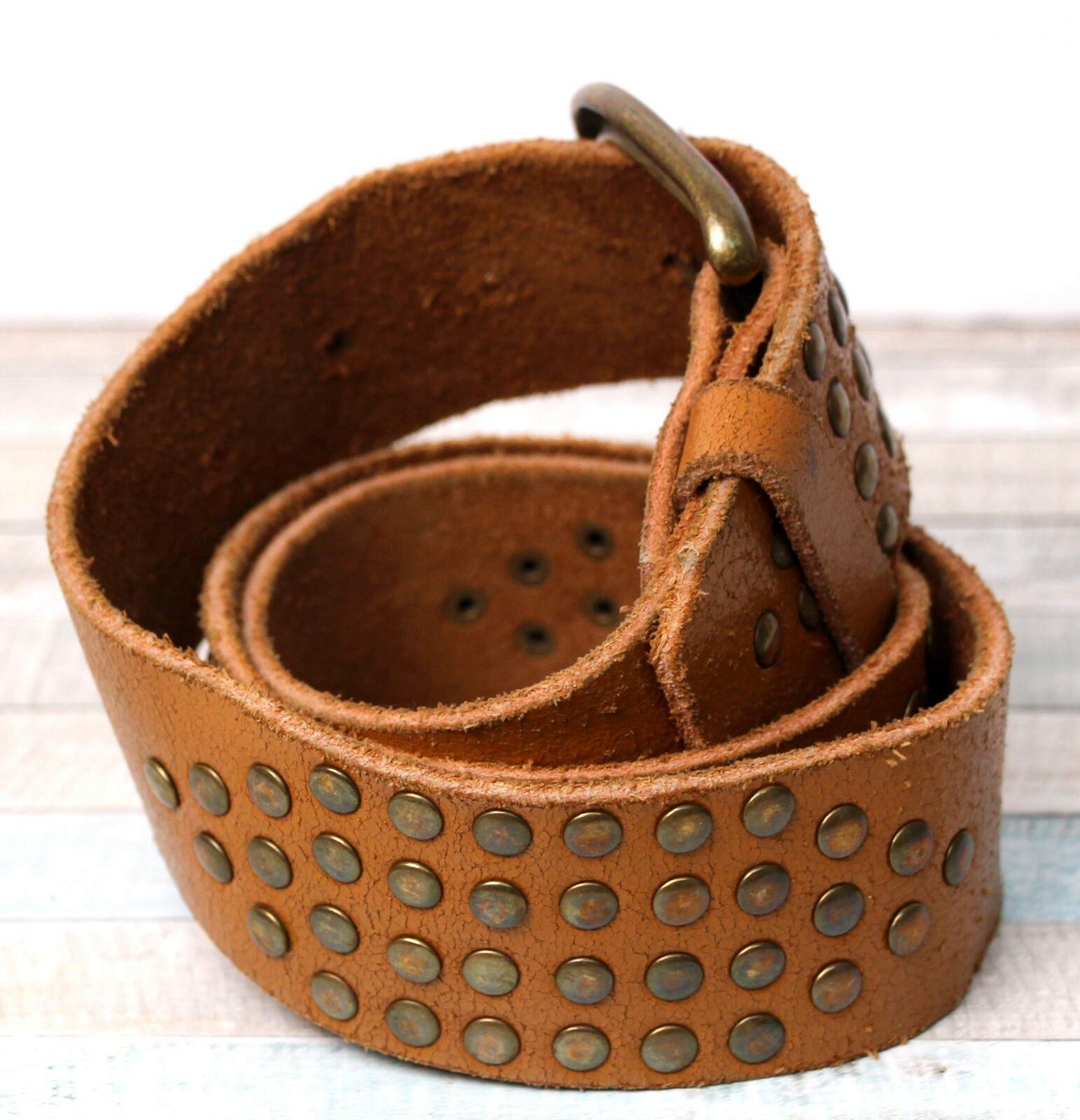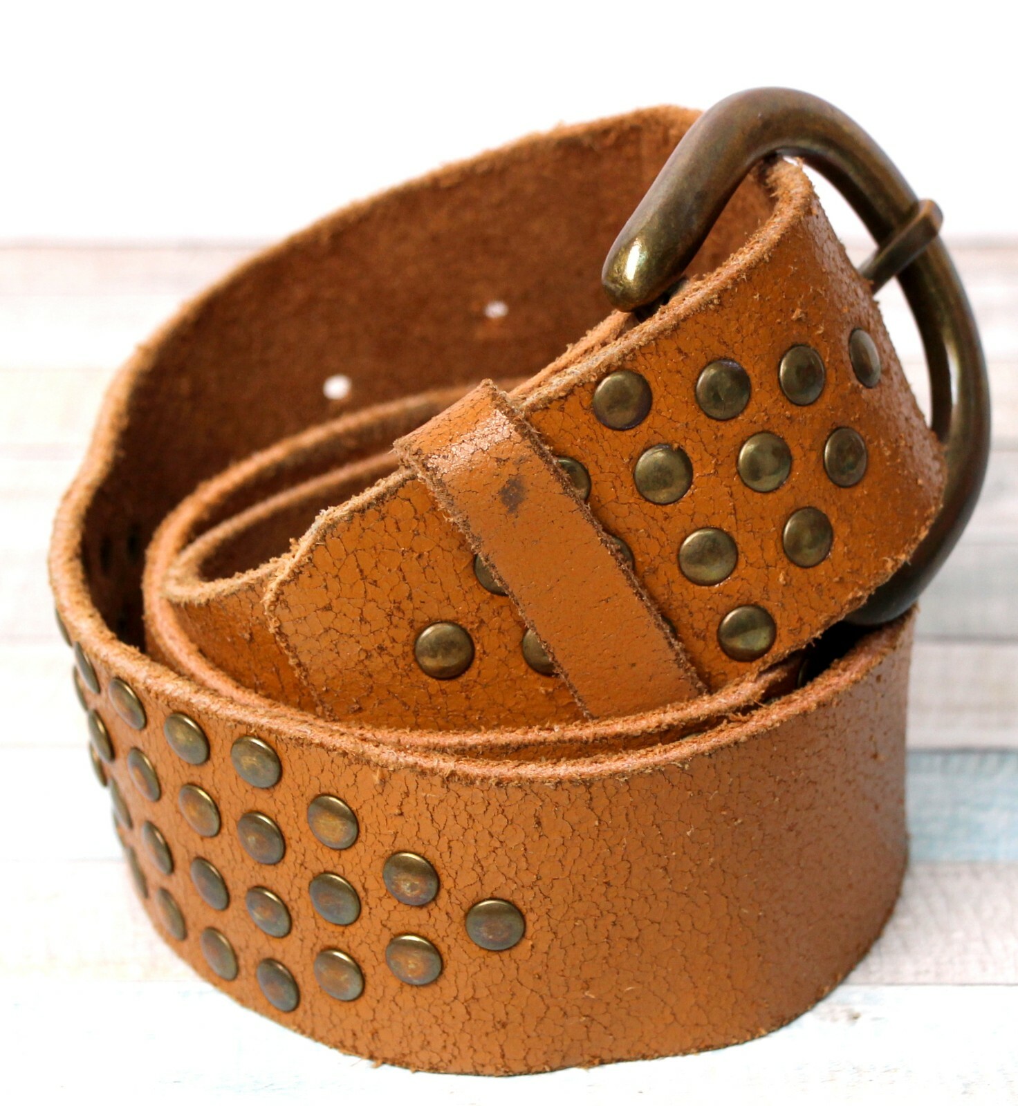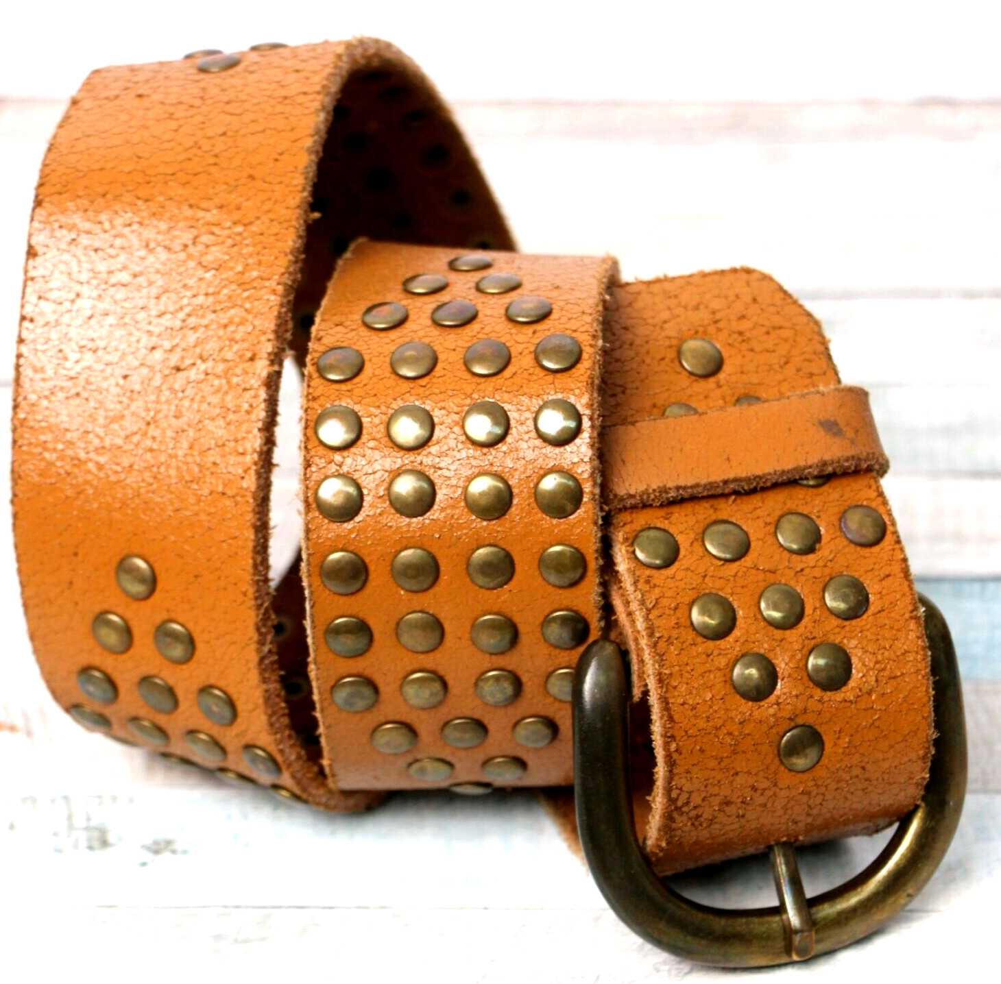 как выглядит VTG LIGHT TAN BROWN GENUINE LEATHER 1 3/4"Wd STUDDED CASUAL WOMEN