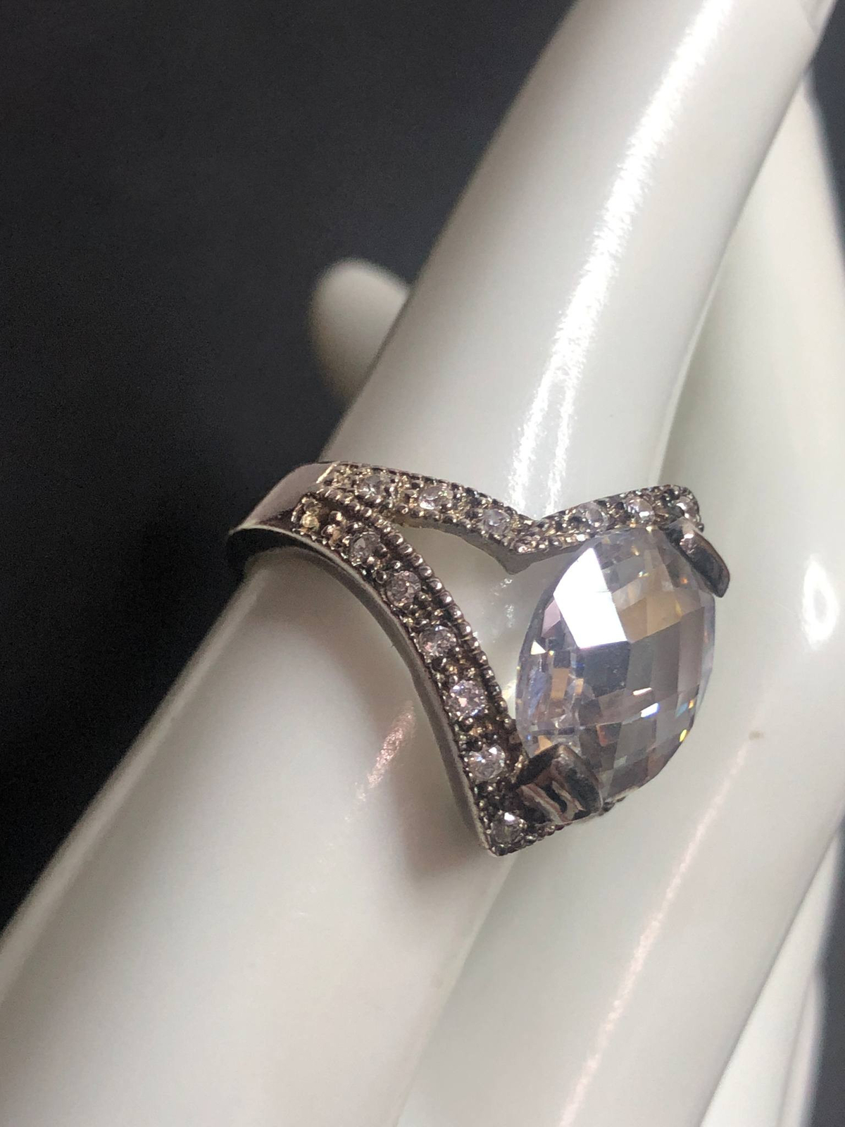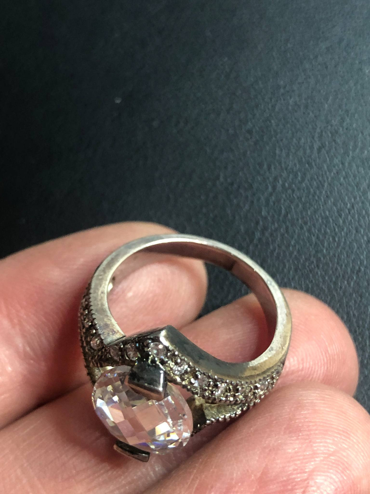 как выглядит 4740 Sterling 925 unmarked checkerboard clear quartz ring Sz 7 6.6grams фото