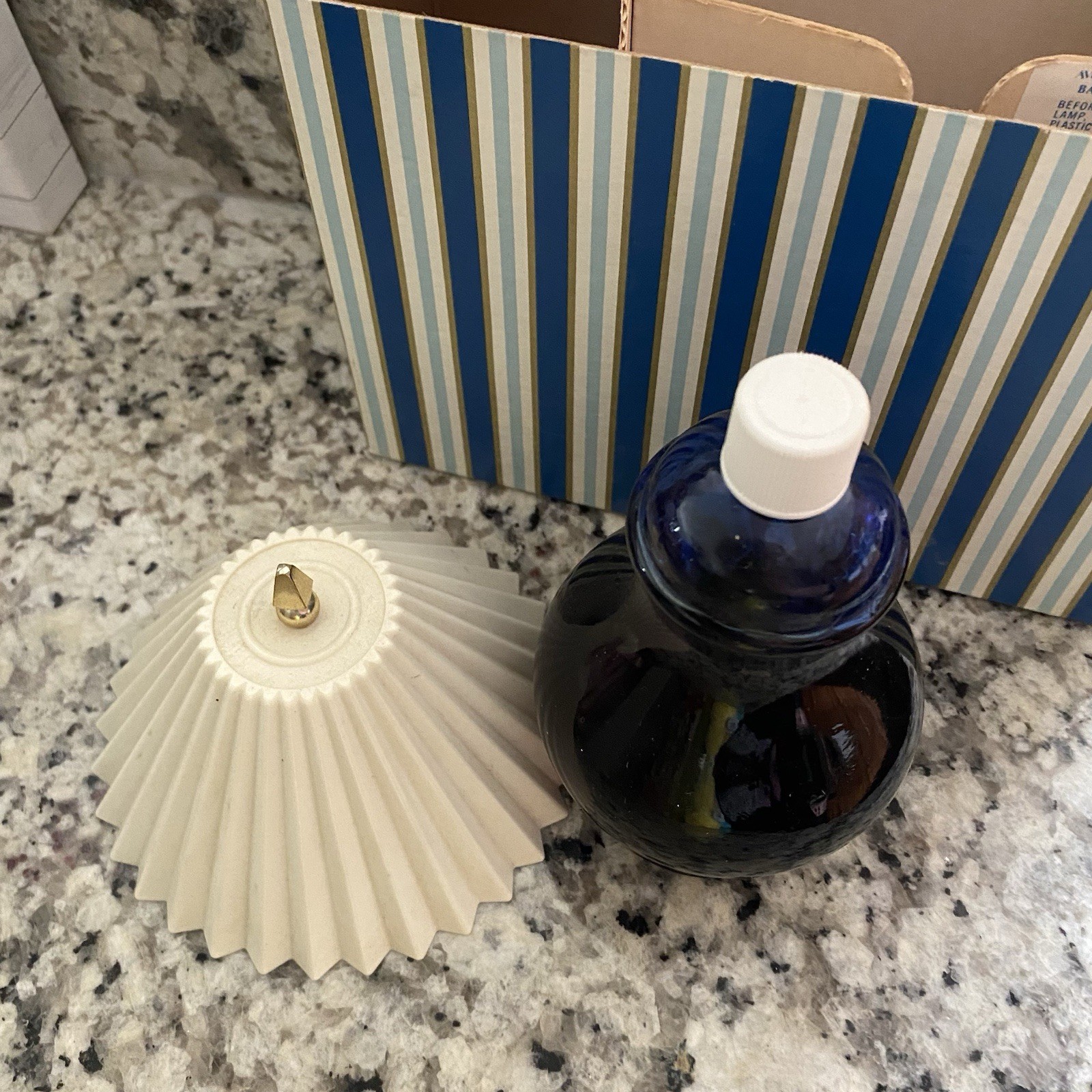 как выглядит Vintage Avon Charisma Foaming Bath Oil in Ming Blue Lamp Decanter New in Box фото