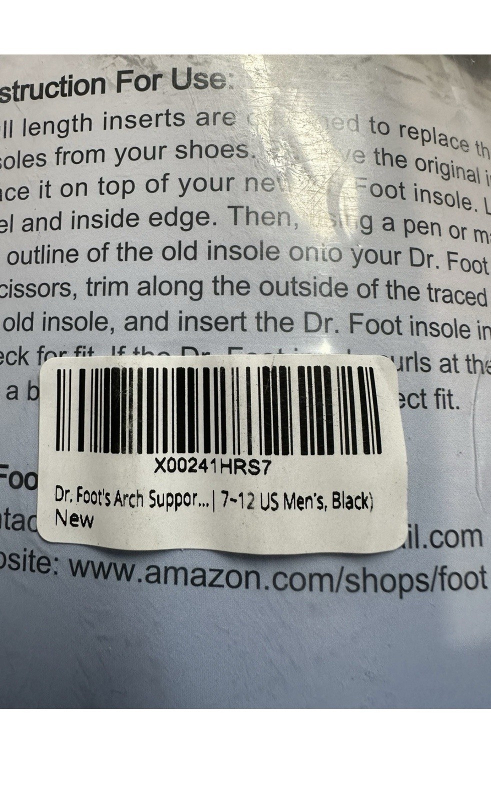 1 Pair Dr. Foot's Arch Support Insoles for Shoes Size 7 to 12
