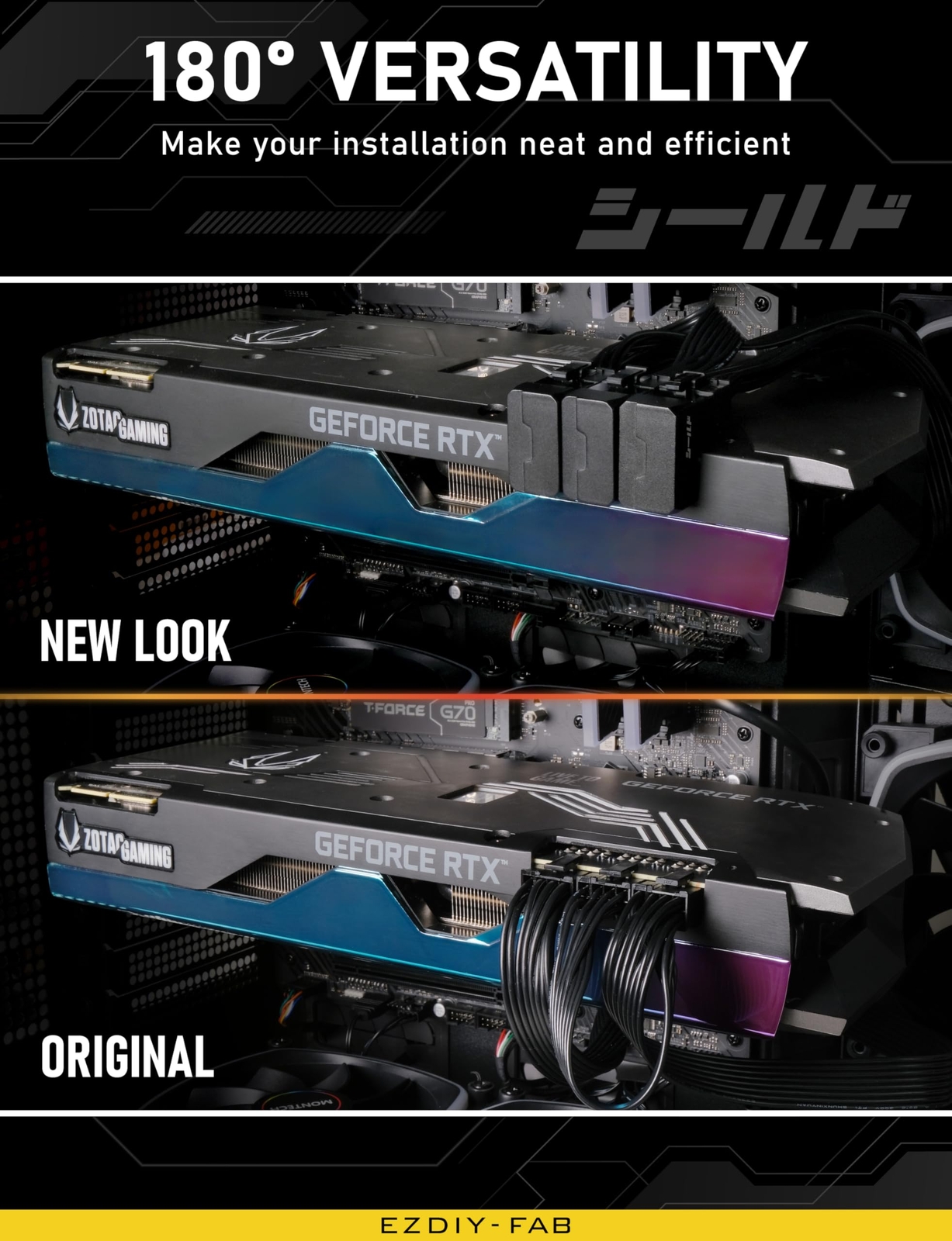 Shield Series 8-Pin PCIe GPU Power Adapter180-Degree U-Turn Angled Connector ...