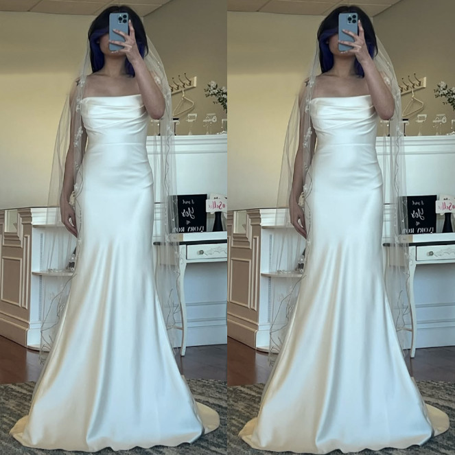 как выглядит Mermaid Satin Wedding Dresses Sweetheart Ruching Simple Sweep Train Bridal Gowns фото