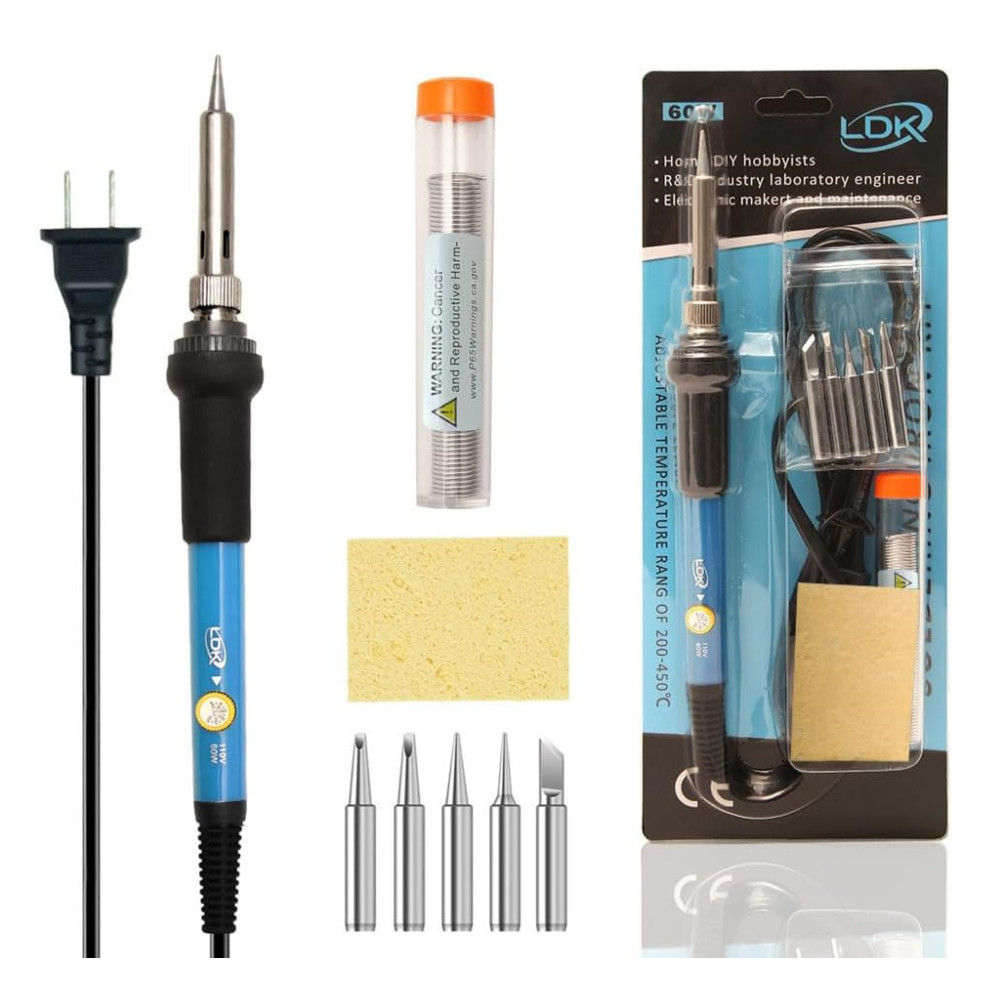 Included Components: Soldering iron, 5 extra soldering tips, solder wire, sponge