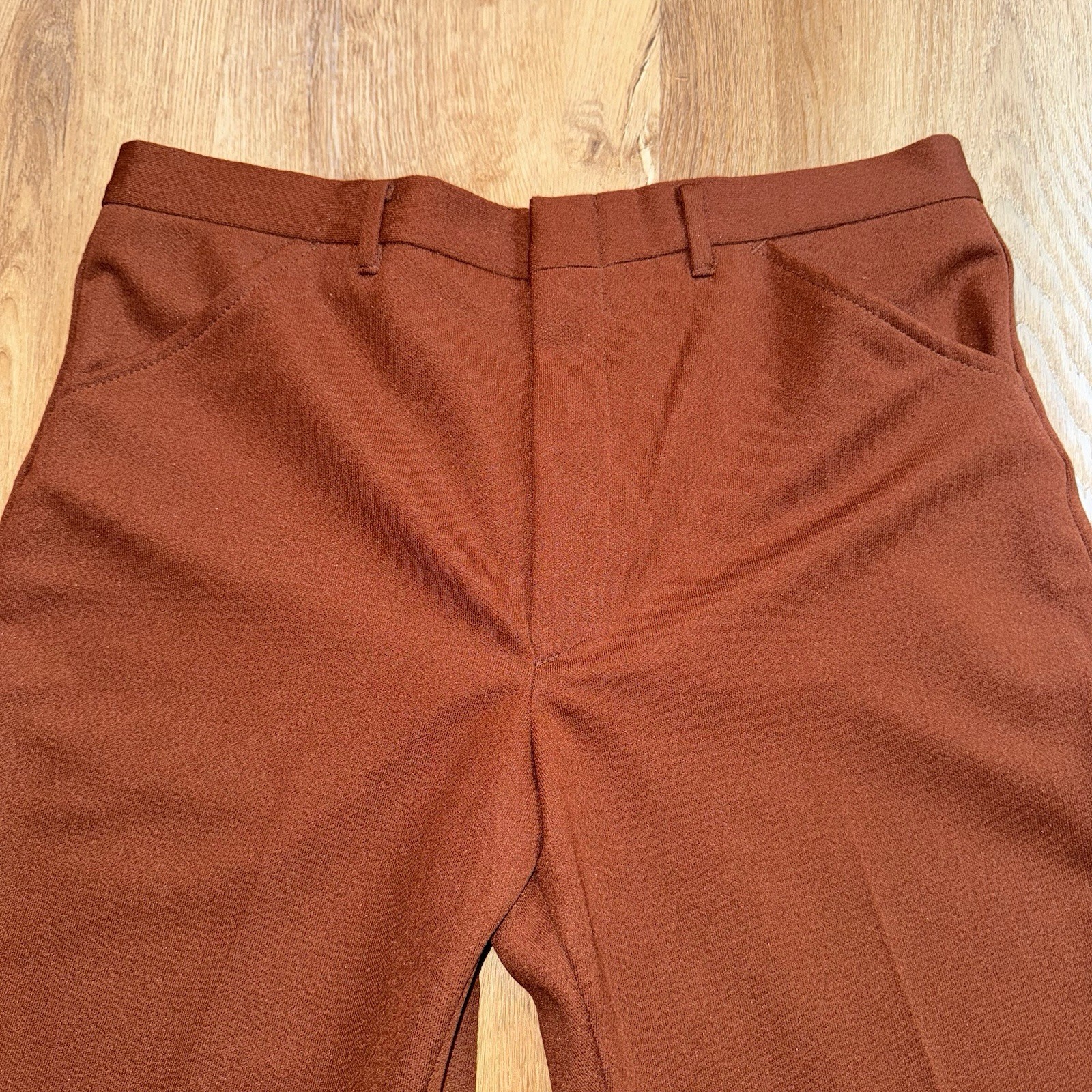 Vtg 70s Haband Pants Mens 34 29 Double Knit Polyester Disco Brown NOS New 1970s