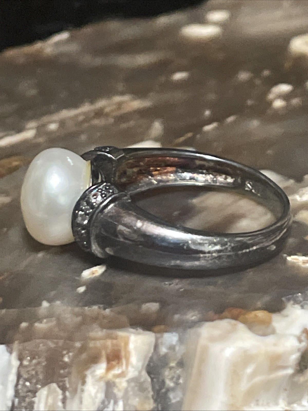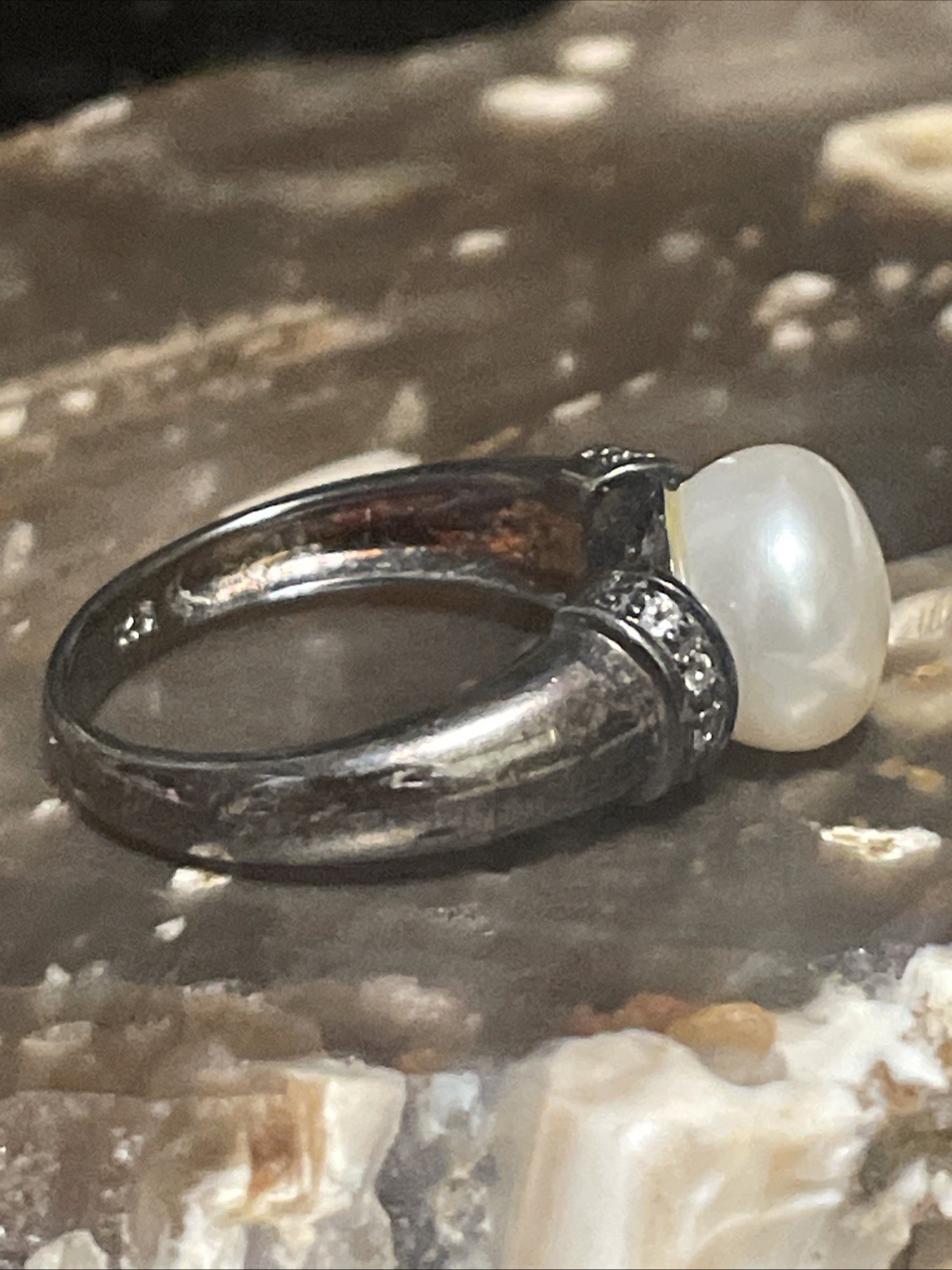 Pearl, CZ, Sterling Silver Vintage Ring Size 6.5