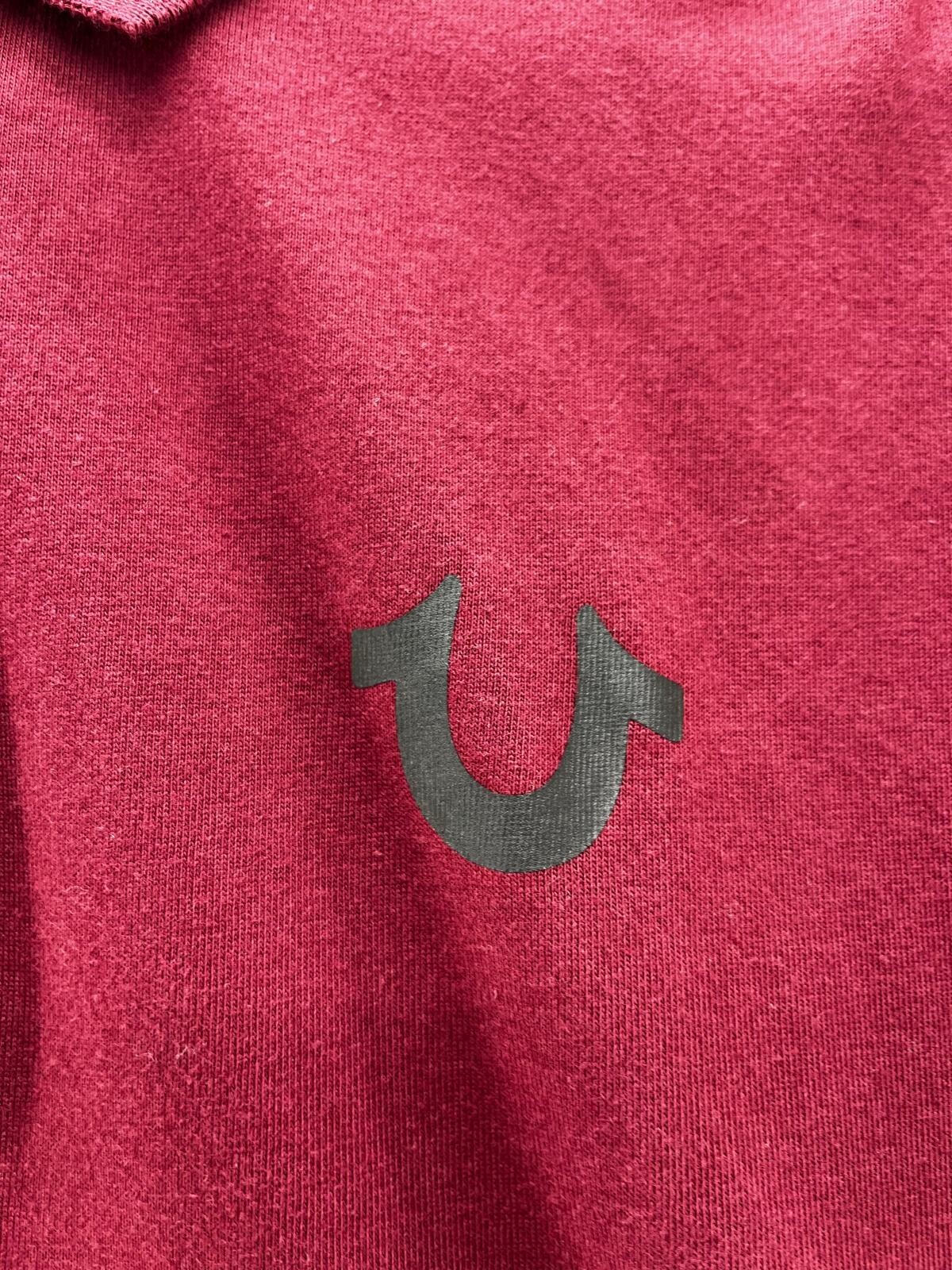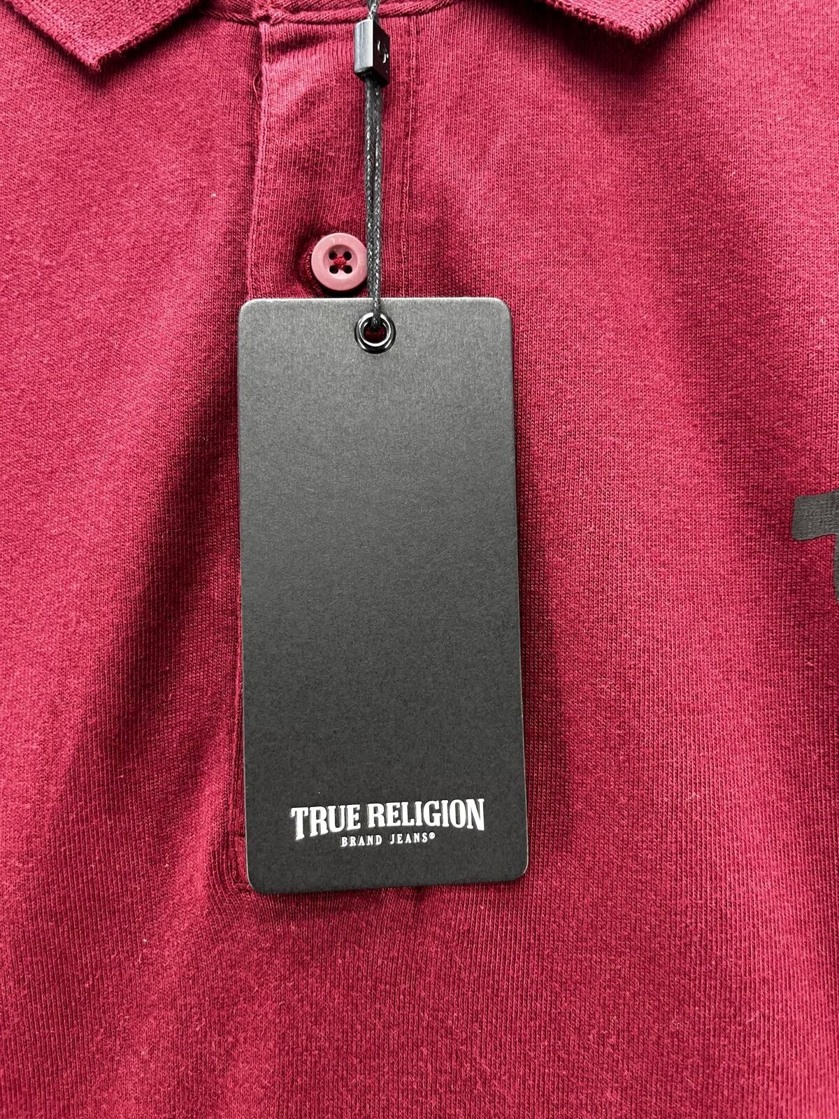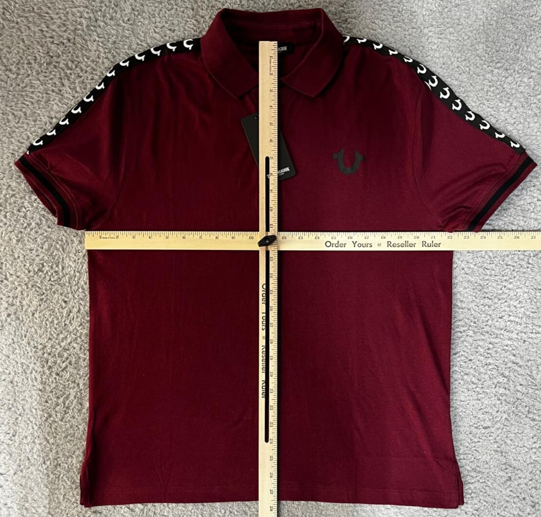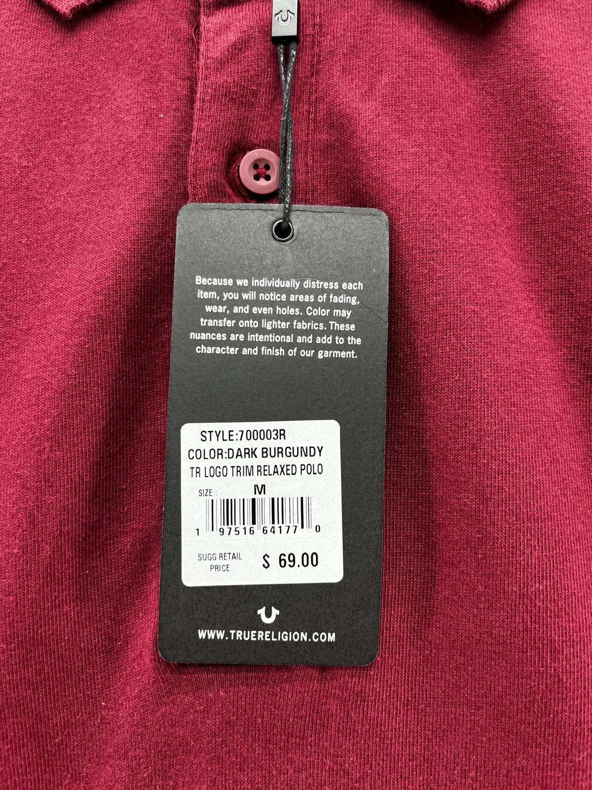 как выглядит True Religion Mens TR Logo Trim Relaxed Polo Shirt  Dark Burgundy  Size M фото