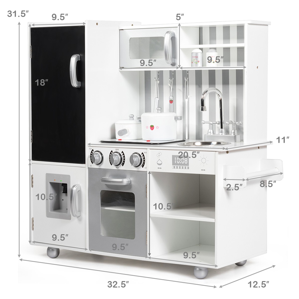Kids Kitchen Playset Wooden Cookware Pretend Cooking Food Set Toddler Gift White