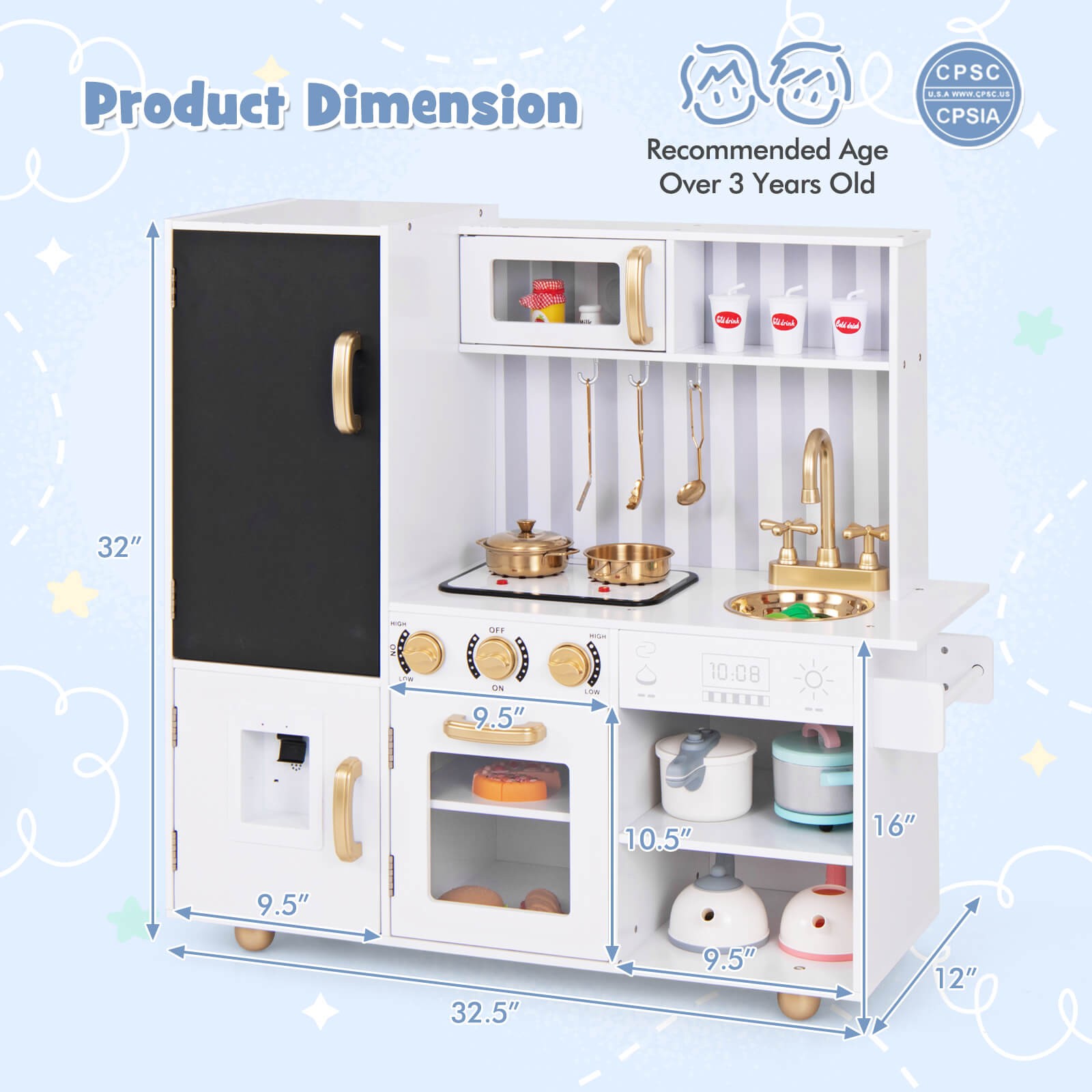 Play Kitchen Toy Set w/ Chalkboard Oven Sink Faucet Stove Water Dispenser