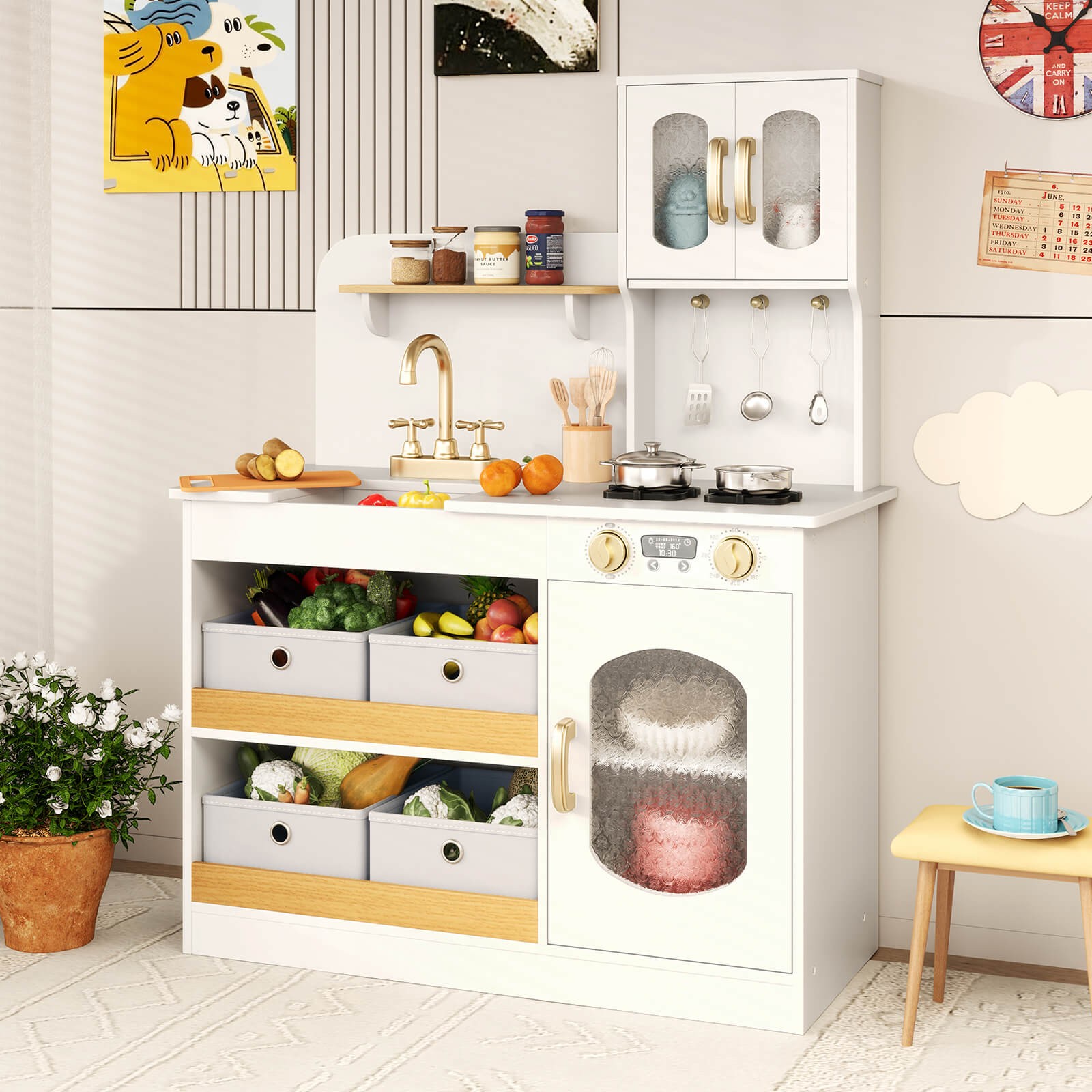 Kids Kitchen Playset Toy Play Kitchen w/ 4 Fabric Drawers, Stoves, Oven Faucet