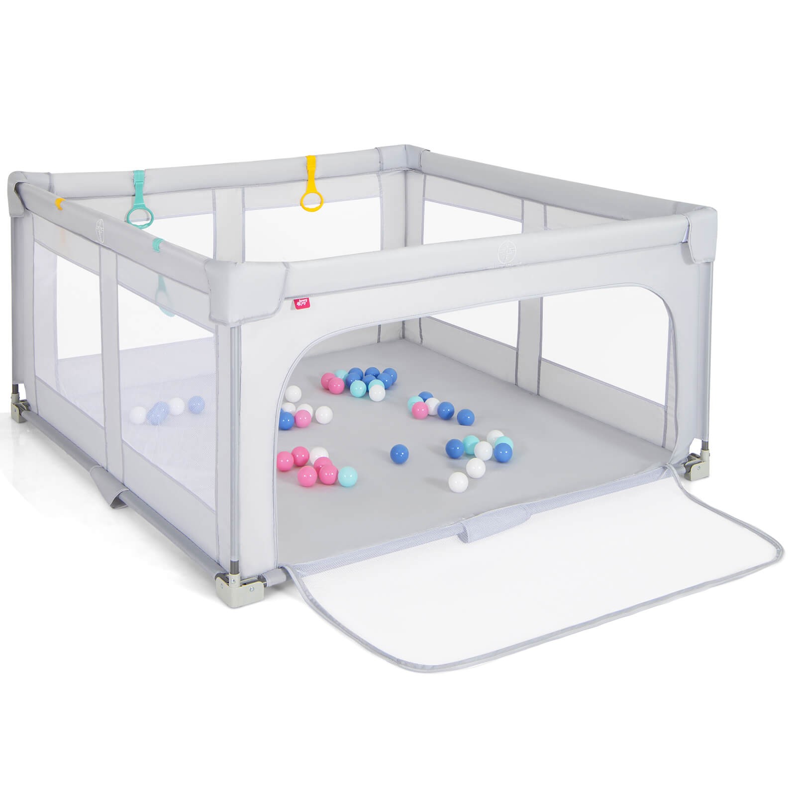 как выглядит Large Baby Playpen 59" x 59" with Zipper Gate 50 Ocean Balls and 4 Pull-up Rings фото