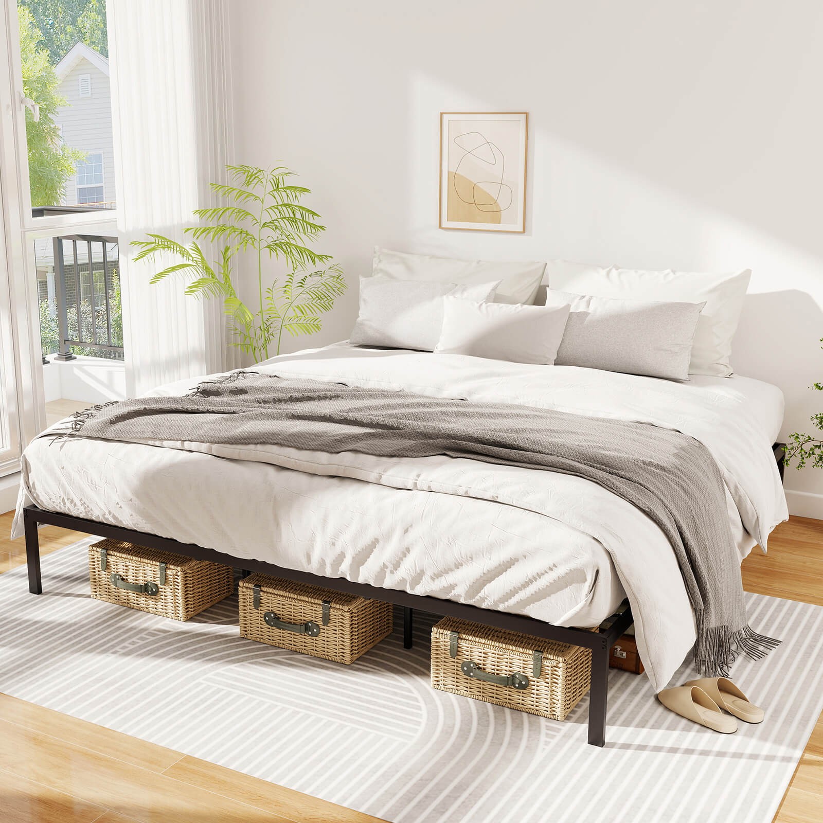 King Size Metal Bed Frame Heavy Duty Support Slats Mattress Foundation