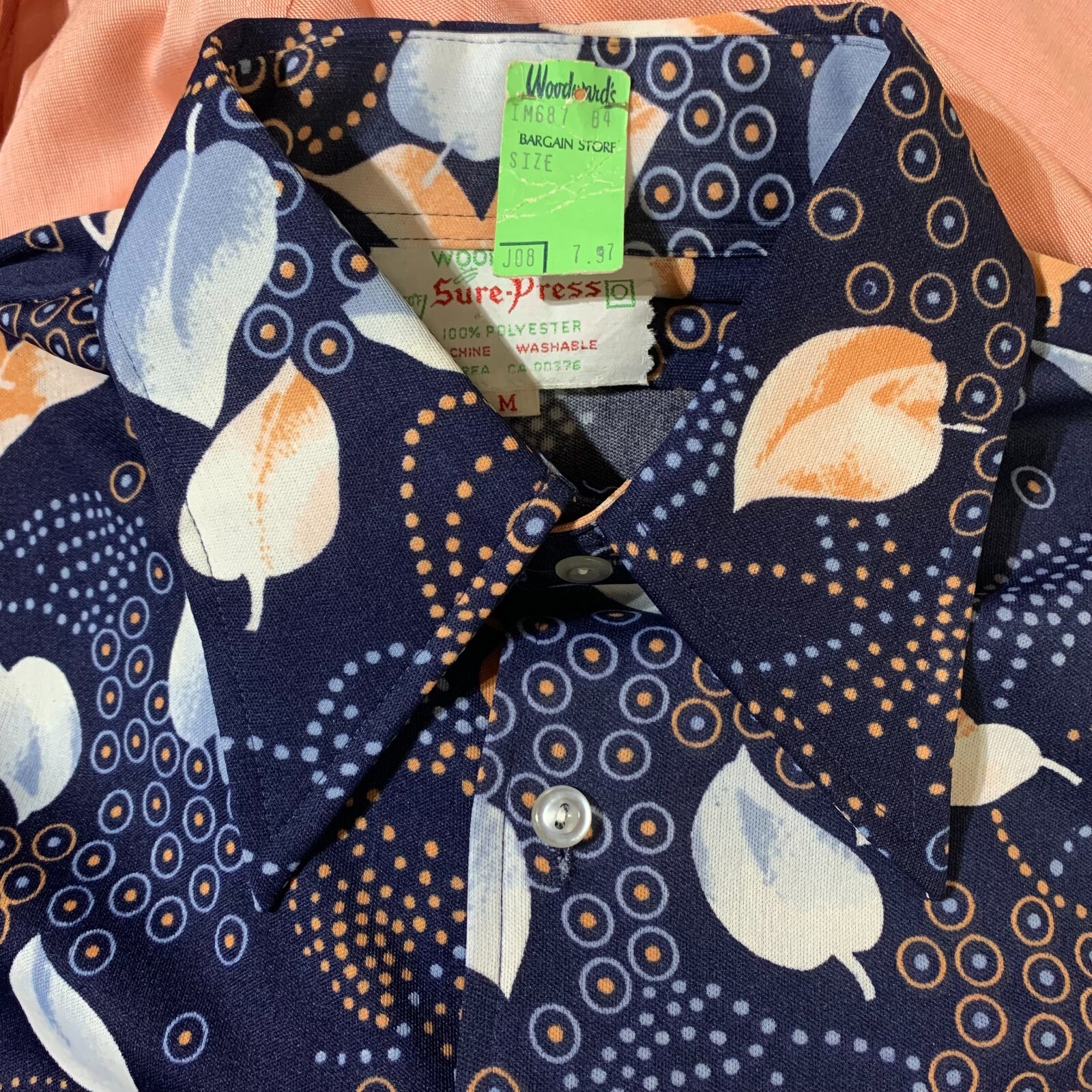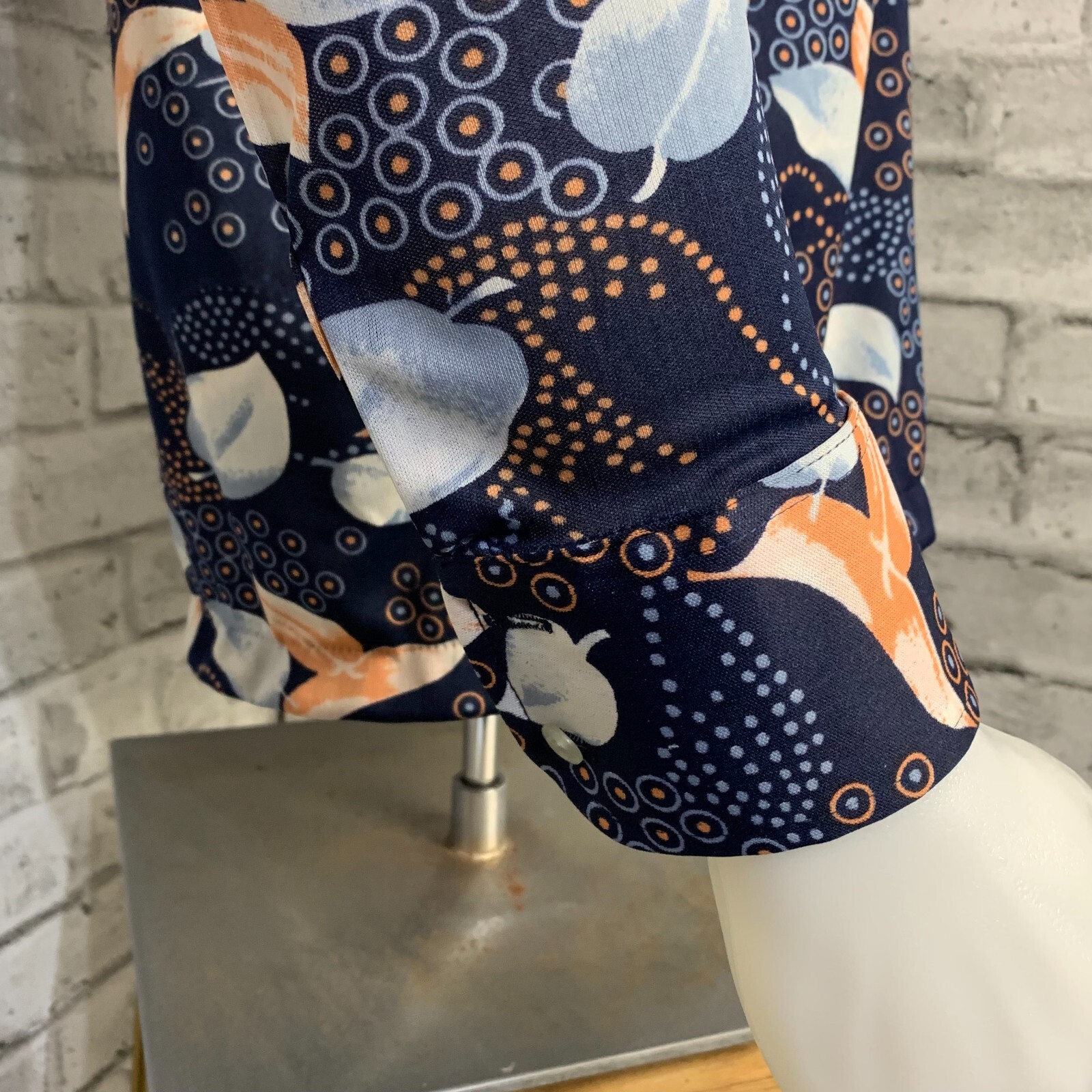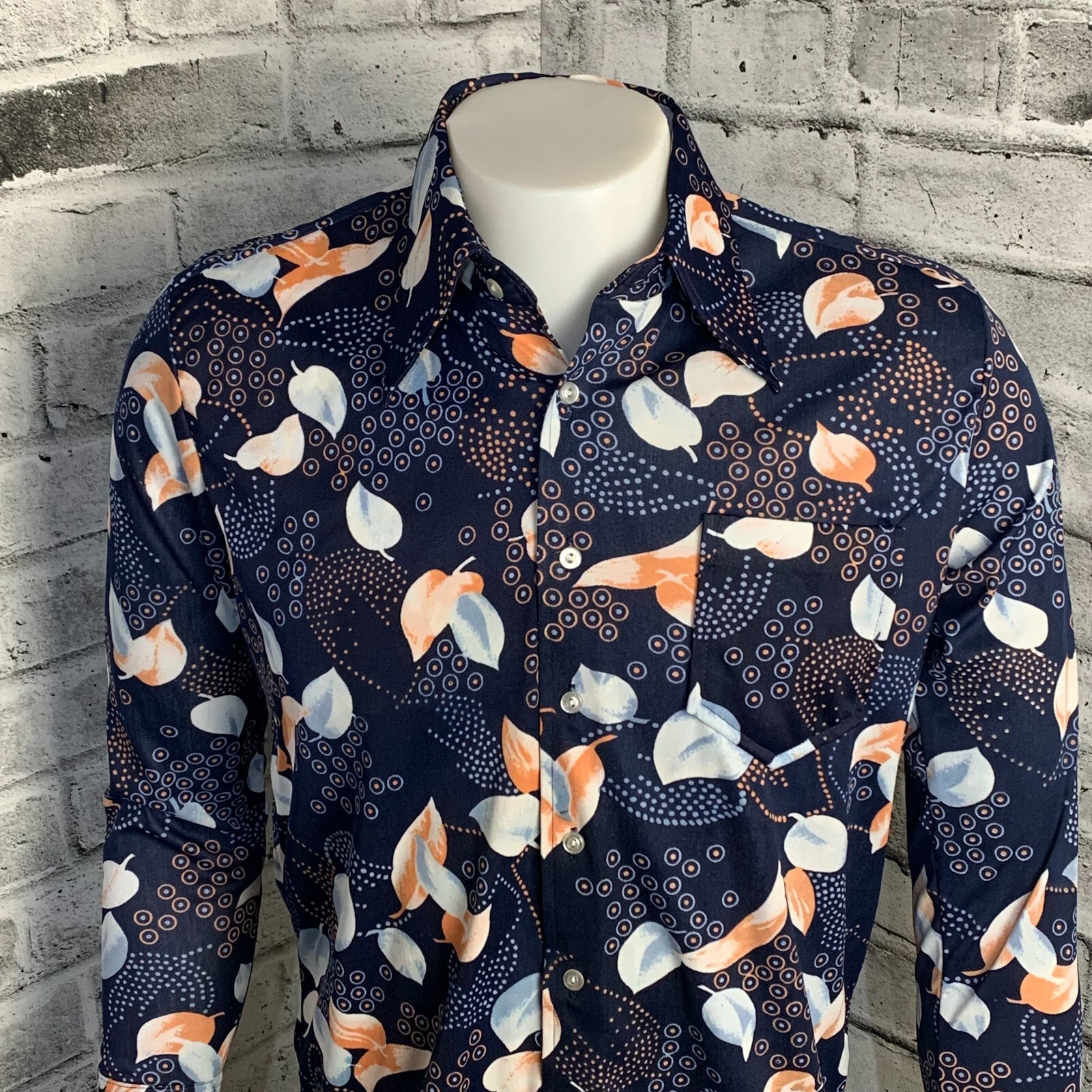 как выглядит Vintage 70s Disco Shirt Mens M All Over Print Dagger Collar Button Groovy Retro фото