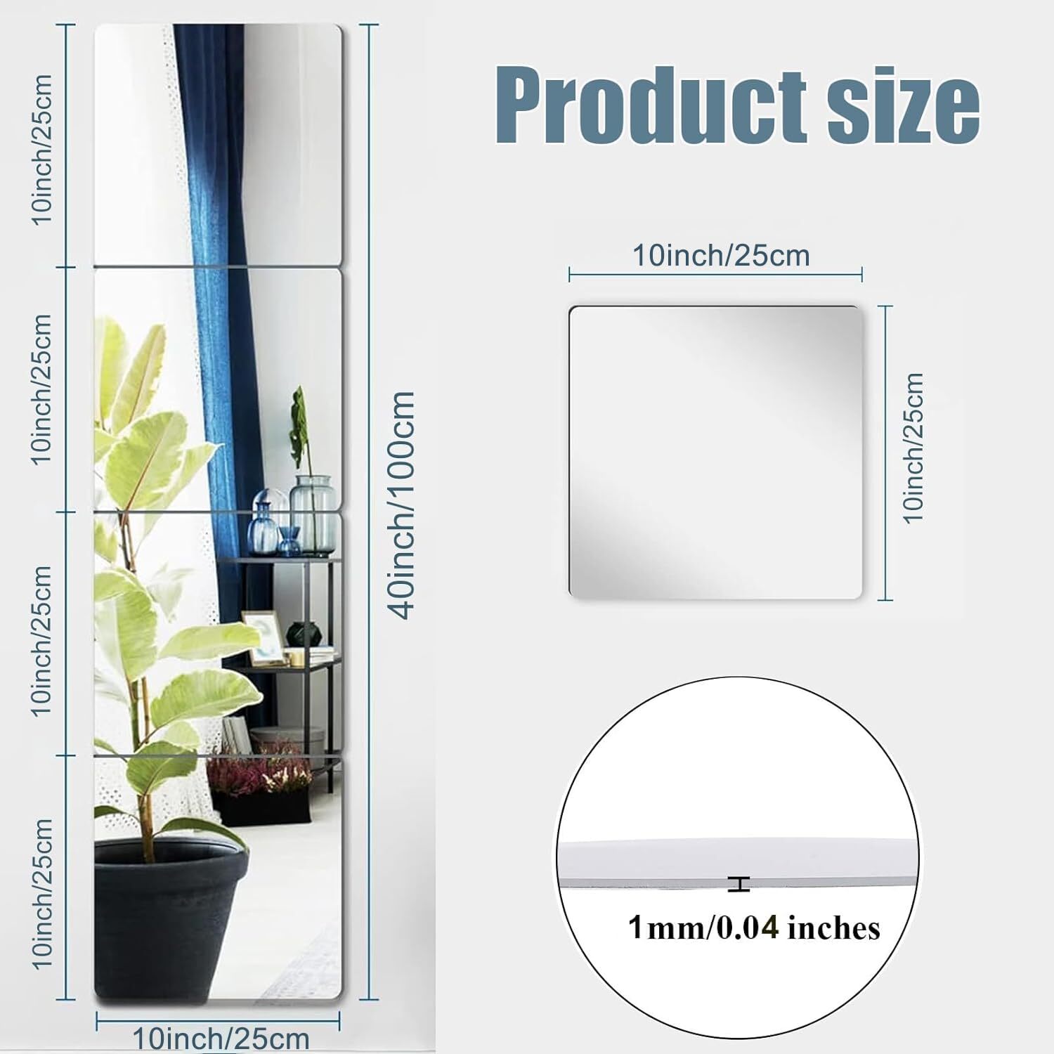 Item Length: 10" x 10" Acrylic Mirror Tiles, 4 Pack Self Adhesive Acrylic