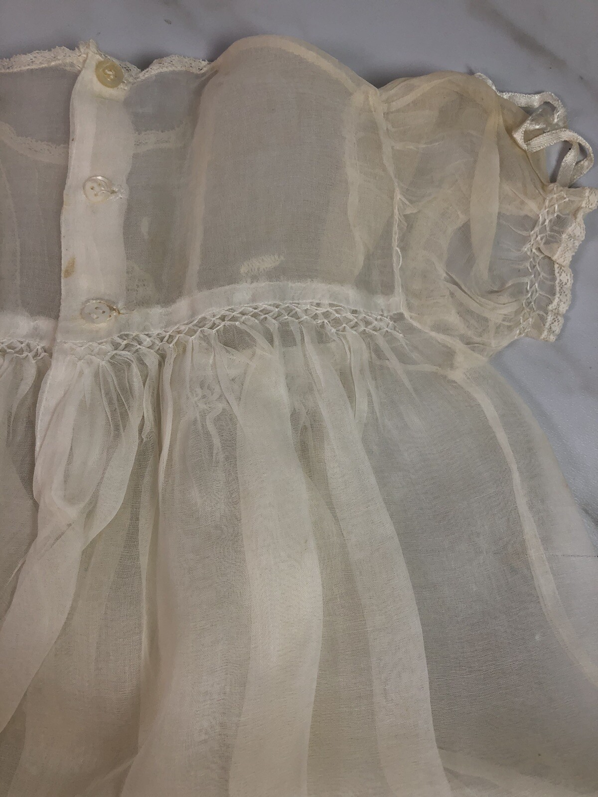 как выглядит VTG 50s Baby Baptism Christening Sheer 2 Pc Dress Layering Slip Organza Cotton фото