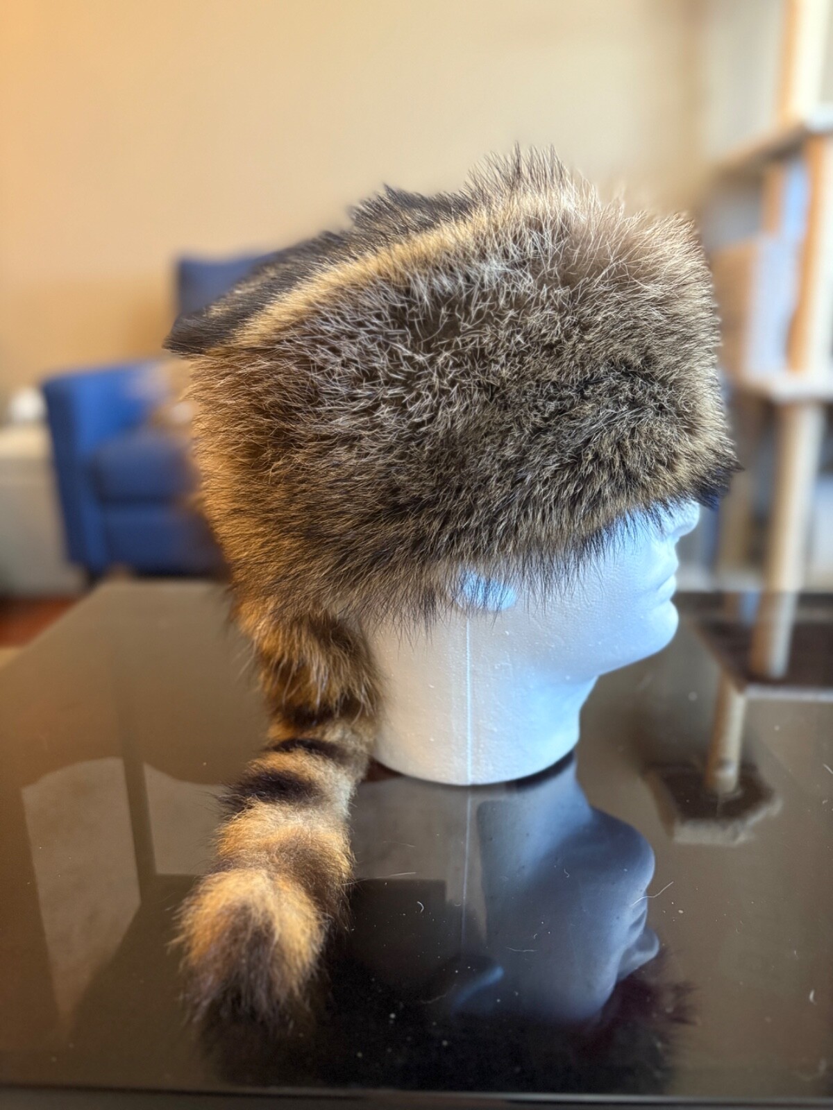 как выглядит Real Texas Raccoon Fur Hat With Tail Davey Crockett Daniel Boone Size S/M фото