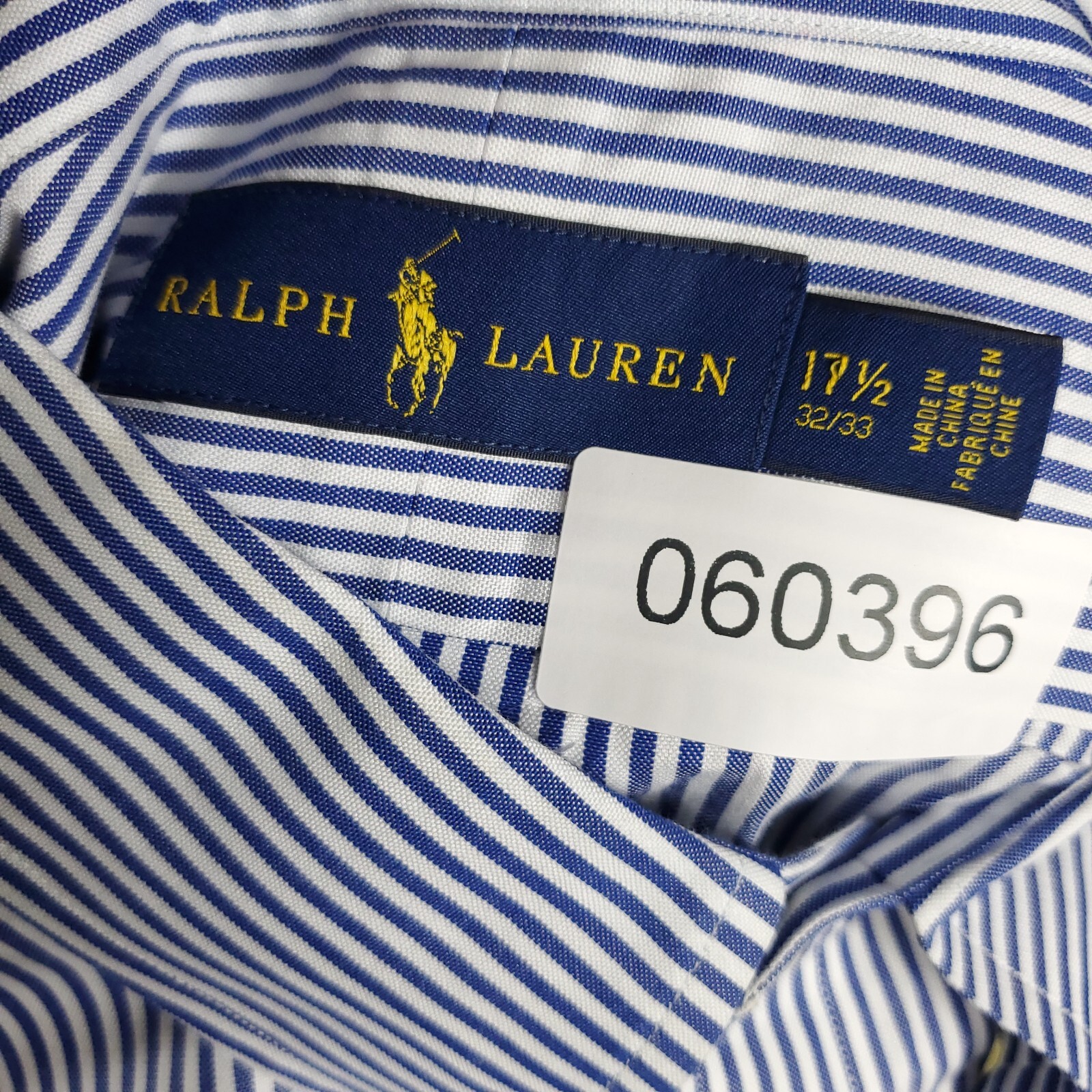 Ralph Lauren Shirt Mens 17.5 Blue Striped Dress Button Up Long Sleeve