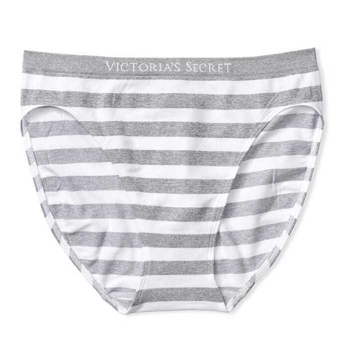 как выглядит Victorias Secret Logo Waist Seamless Heather Stripe High Leg Brief Panty S Nwt фото
