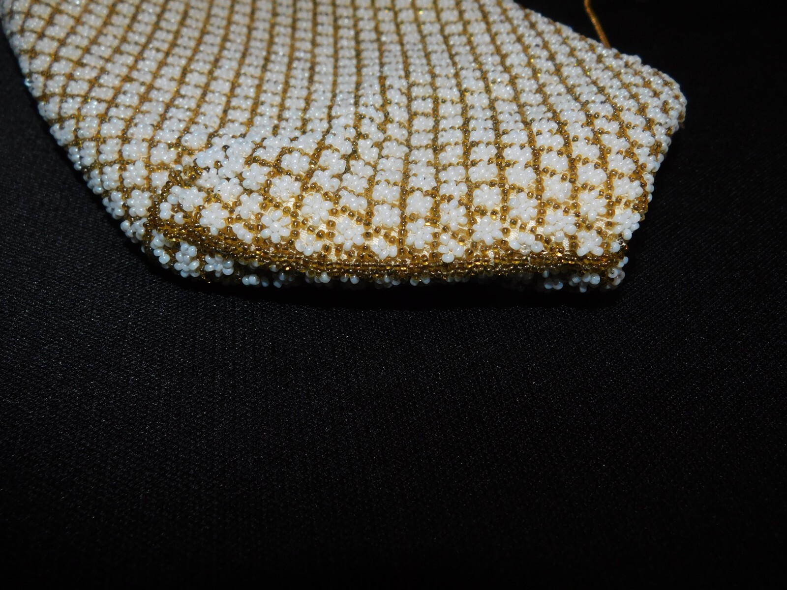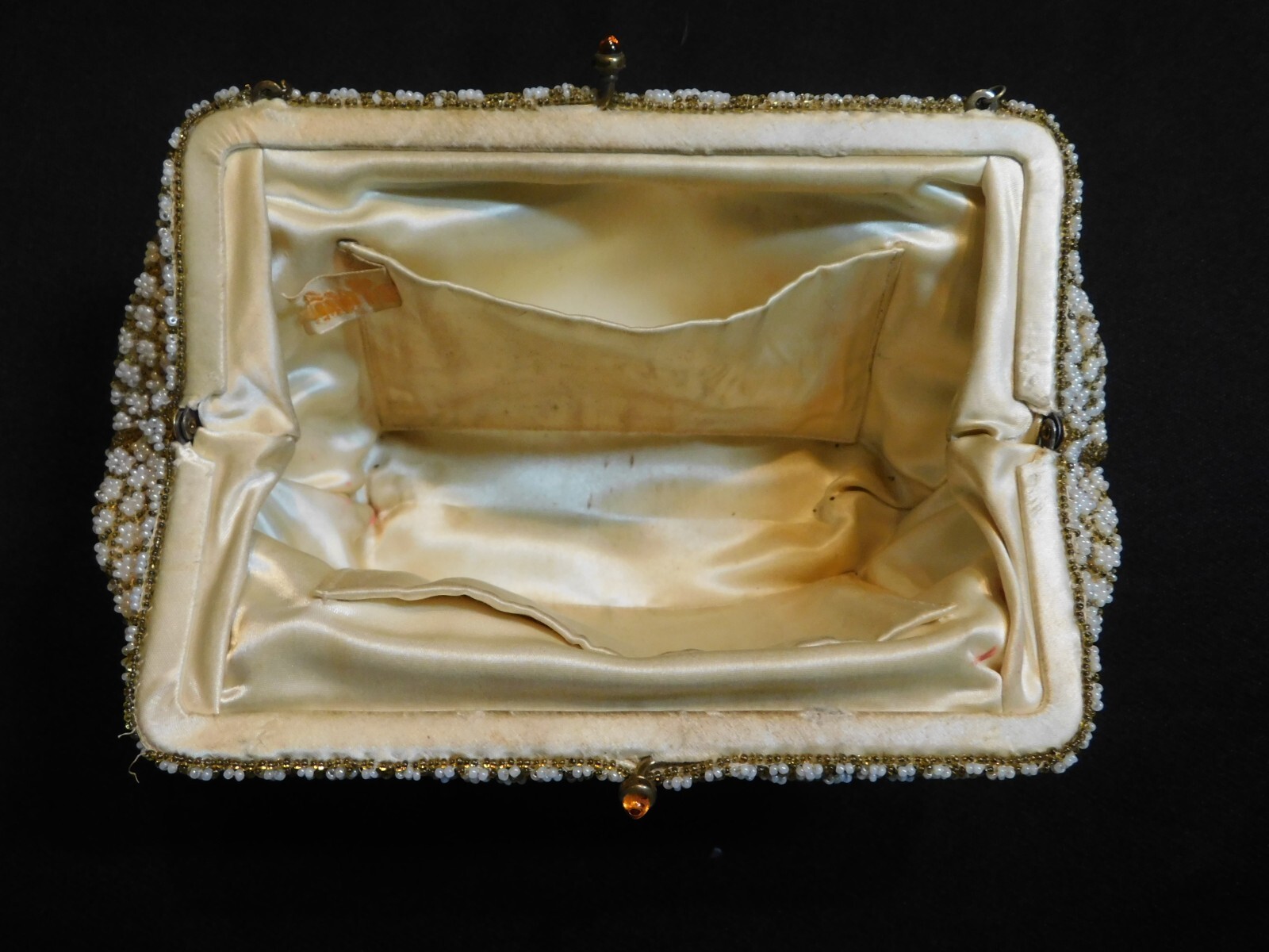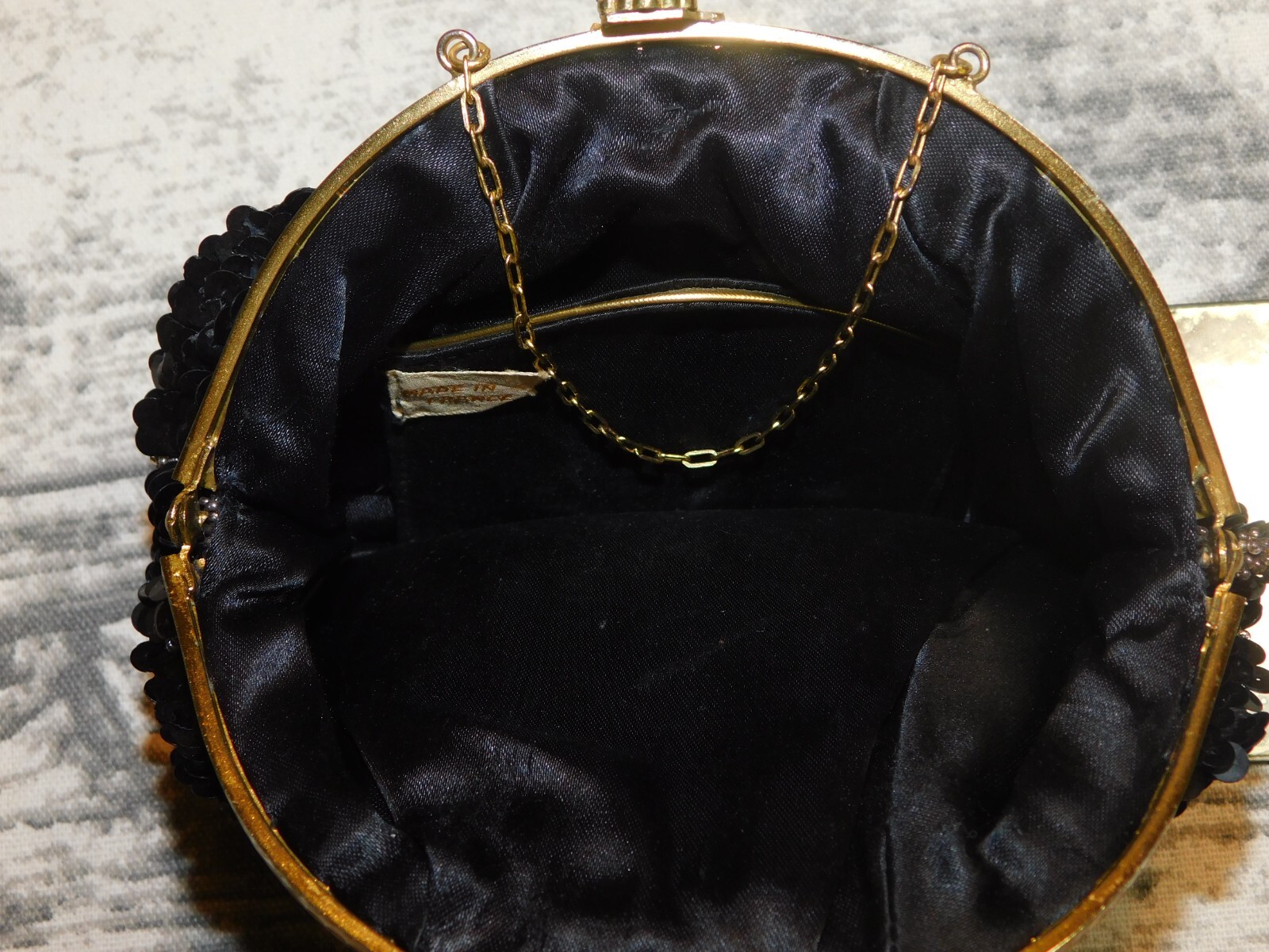 VTG LOT HANDBAG PURSE BEADED TAPESTRY CARPETBAG JOSEF BEAD GOLD FLOWERS BLACK