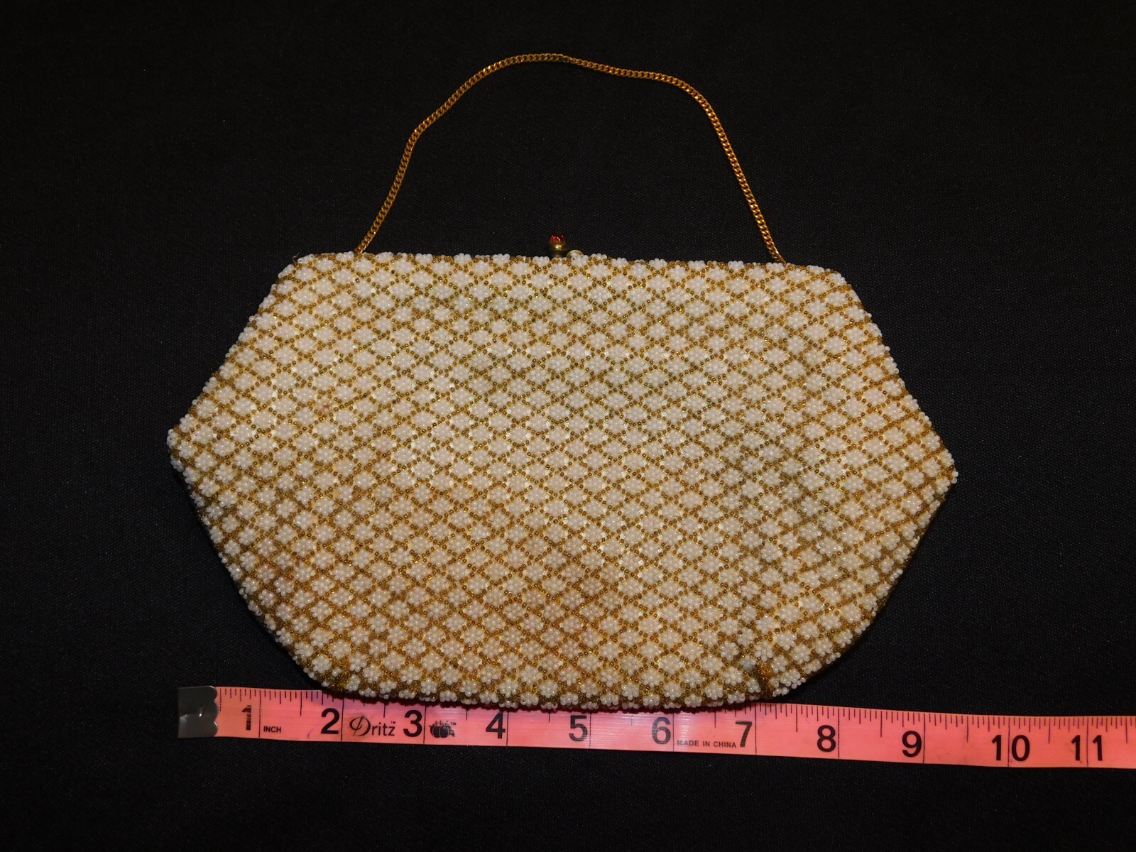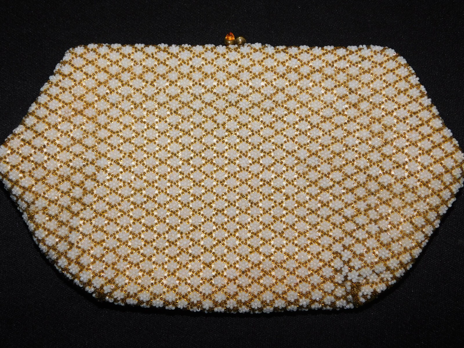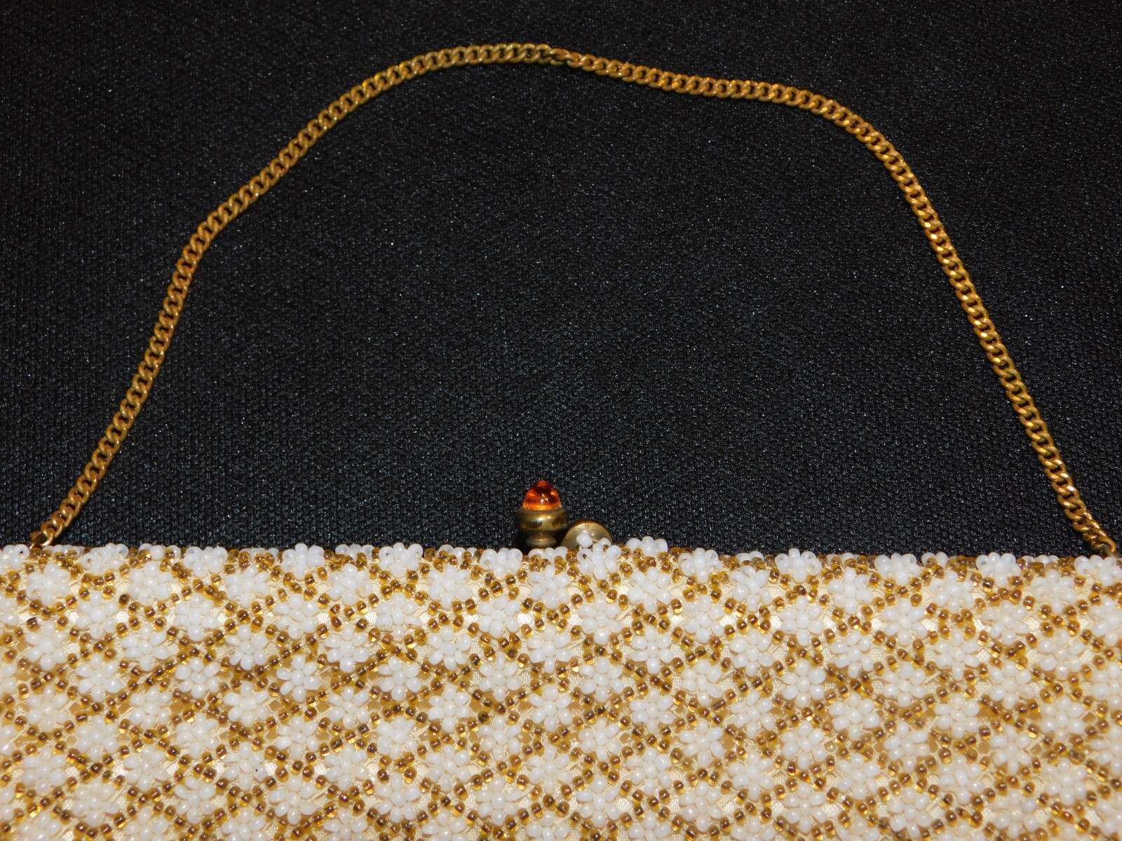 VTG LOT HANDBAG PURSE BEADED TAPESTRY CARPETBAG JOSEF BEAD GOLD FLOWERS BLACK