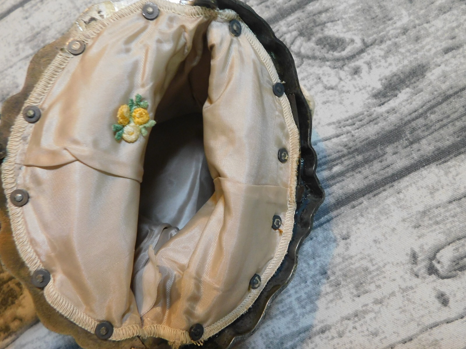 как выглядит VTG LOT HANDBAG PURSE BEADED TAPESTRY CARPETBAG JOSEF BEAD GOLD FLOWERS BLACK фото