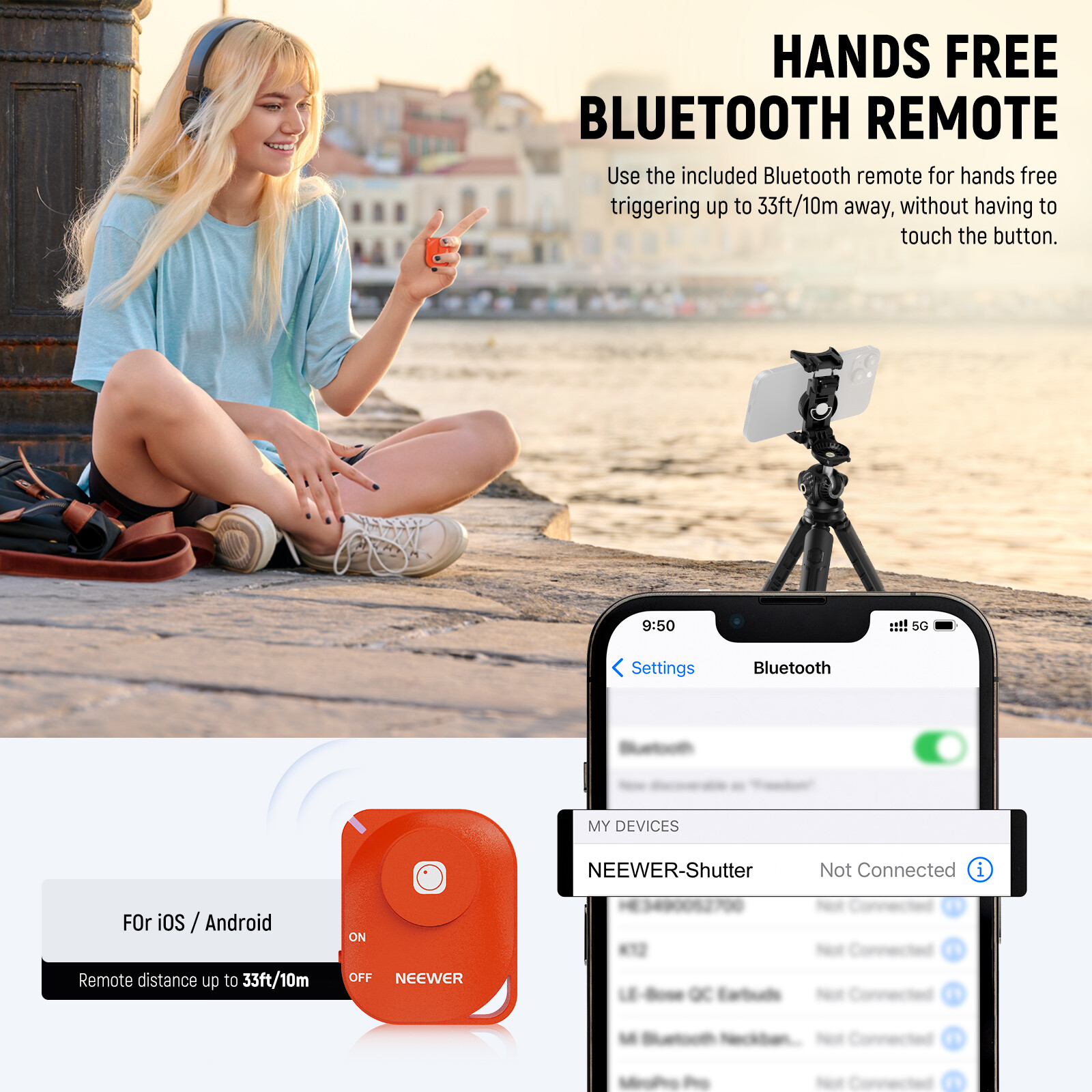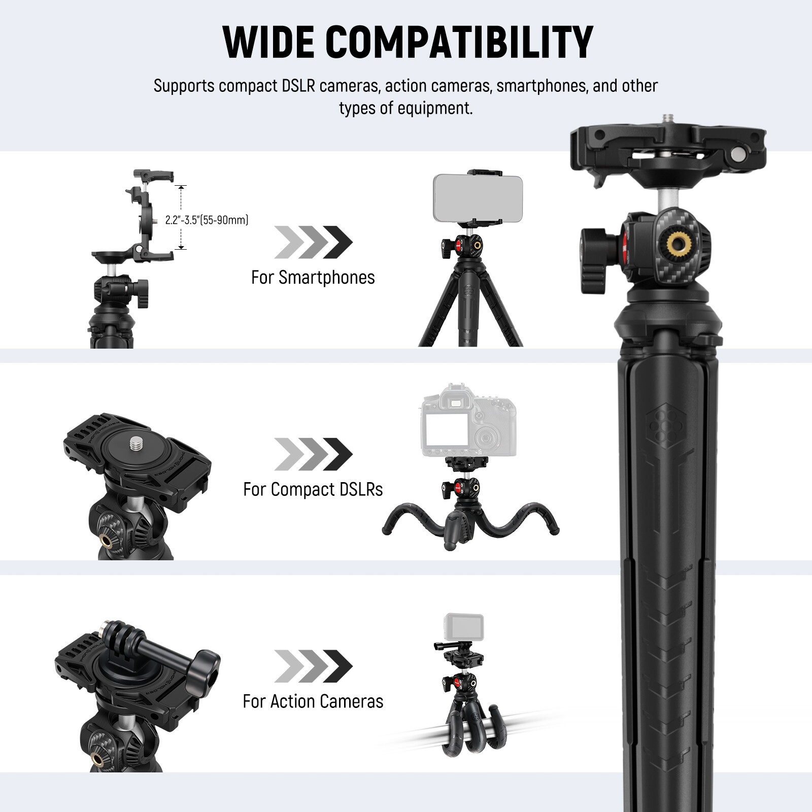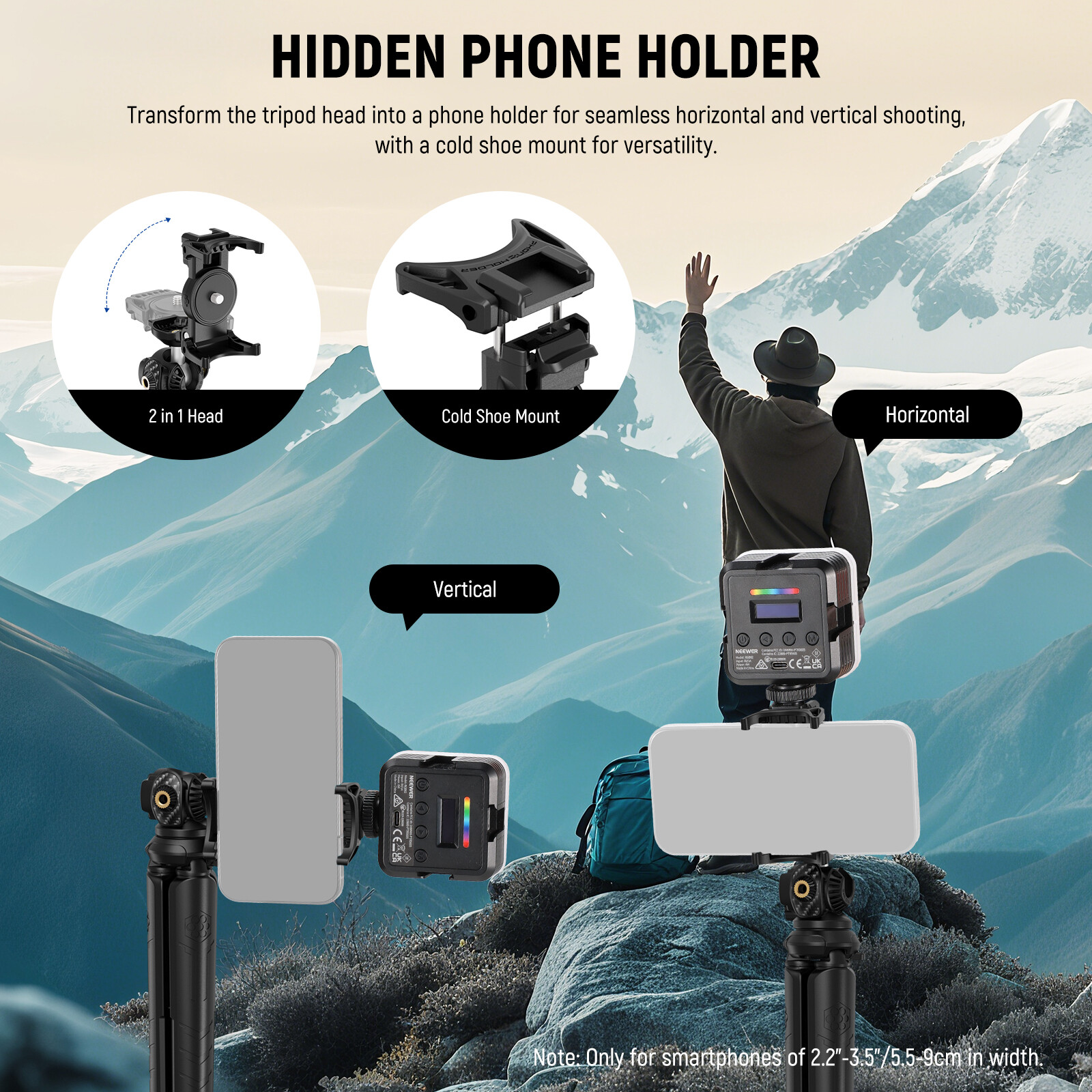NEEWER Mini Tripod for iPhone/GoPro w/Remote, Phone Holder Adapter, TP35D