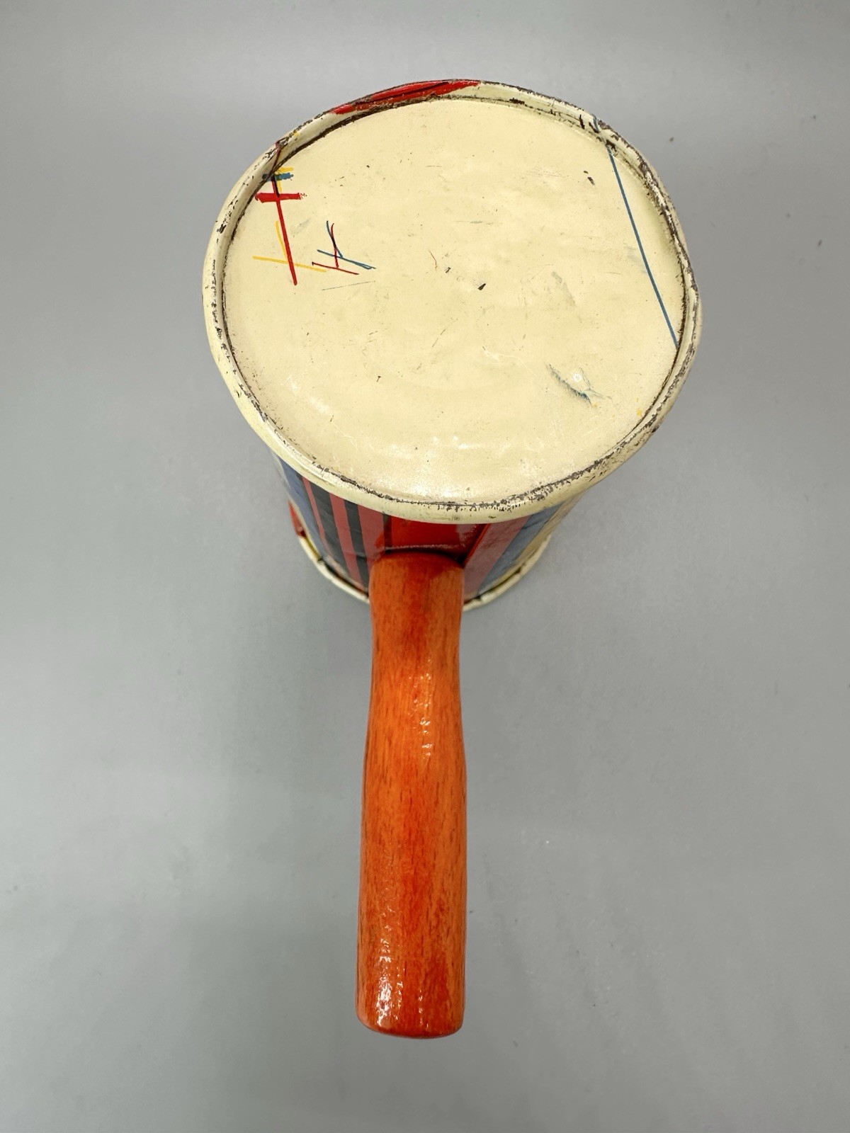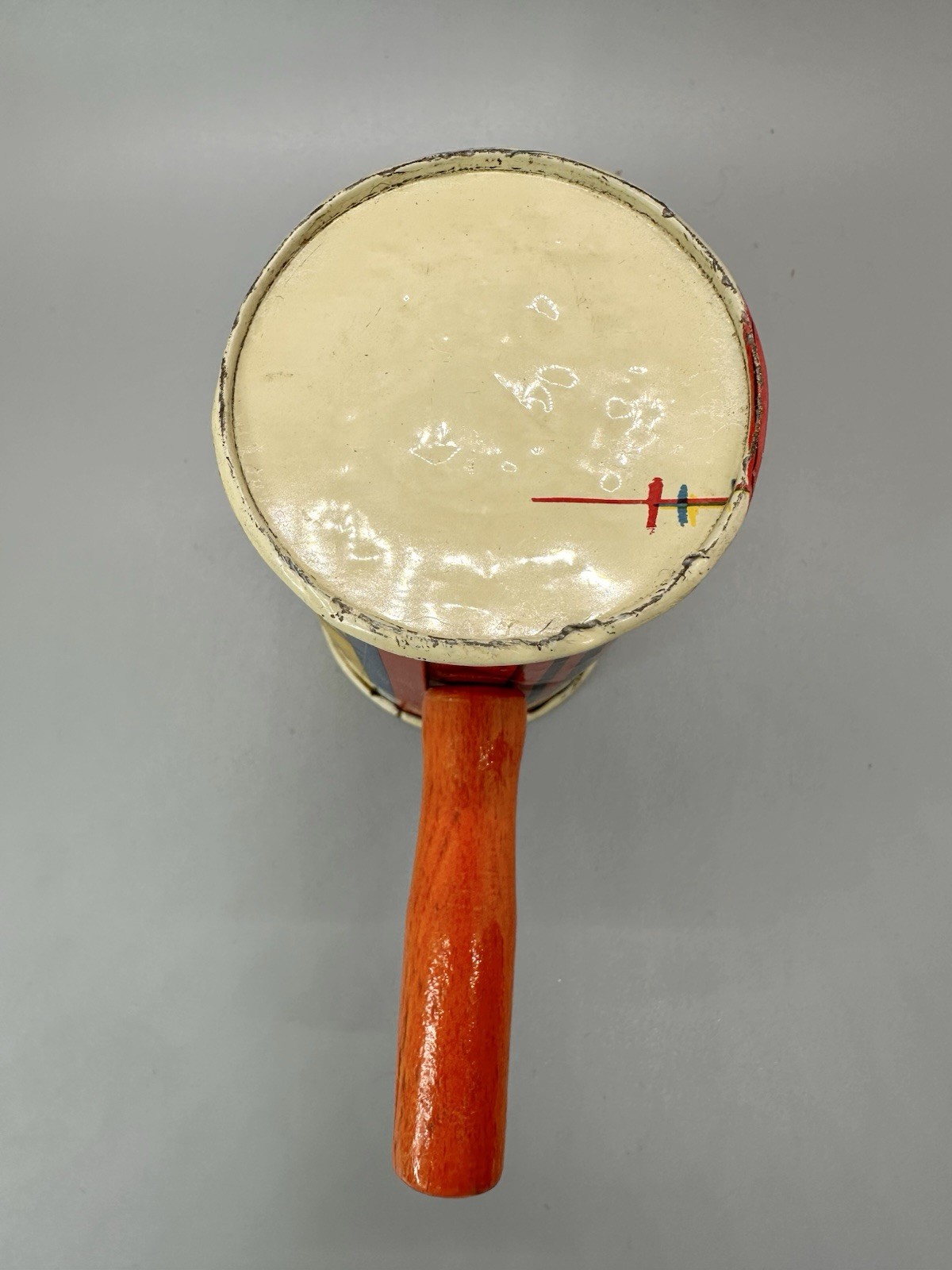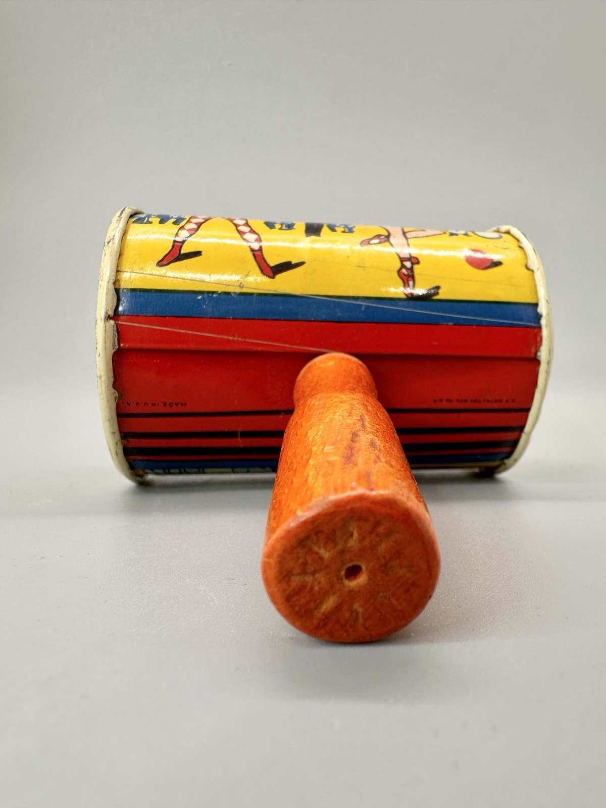 как выглядит Vintage Tin Wood Handle Dancers Noisemakers Toy 5" Red Yellow Collectible фото
