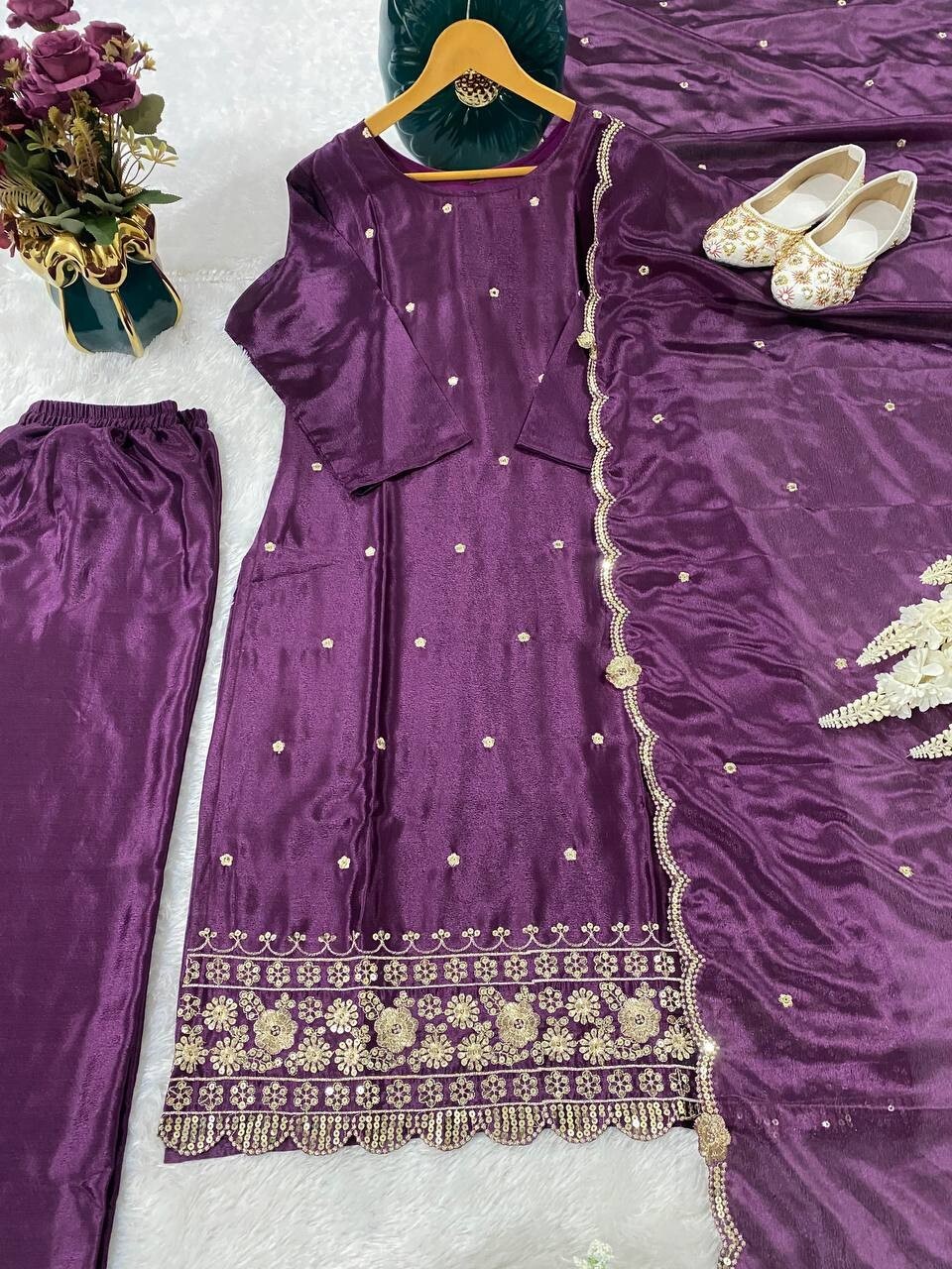 New Function Wear Purple Chinon Salwar Kameez With Dupatta For Women Girls