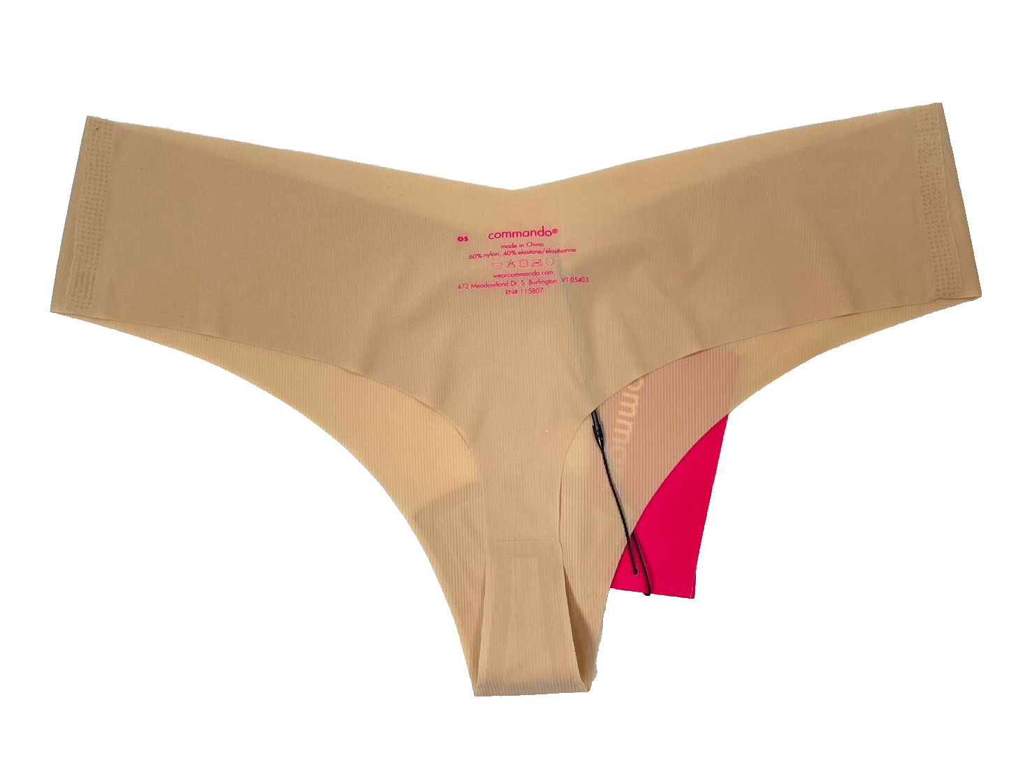 NWT Commando Women's One Size Invisible Rib Thong BMR100 Beige 22