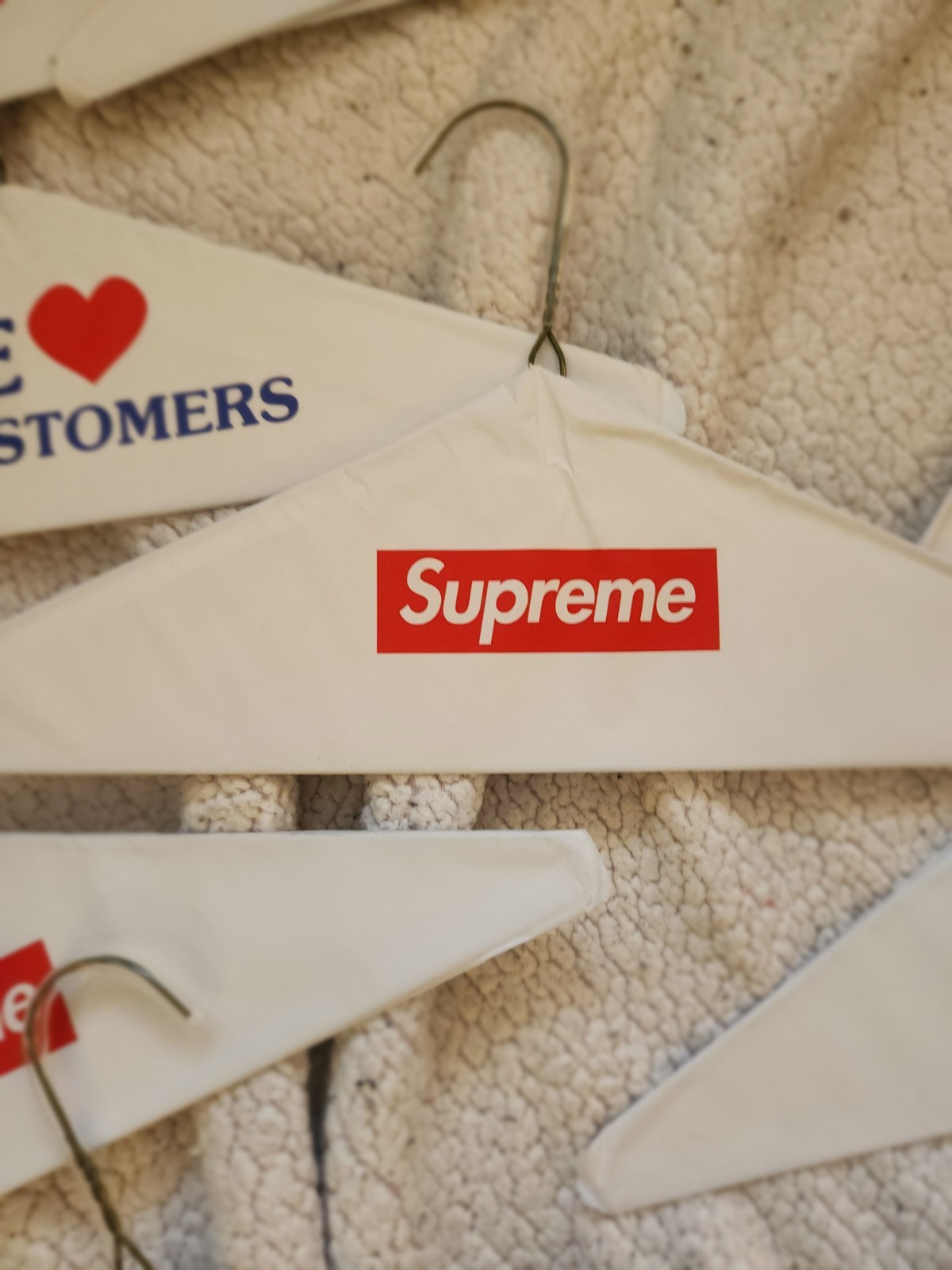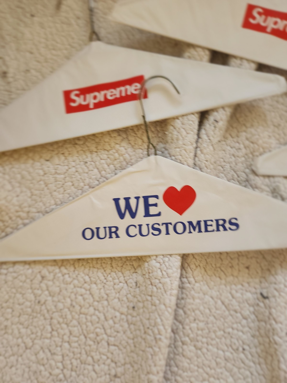 как выглядит 10 Pack Authentic Supreme We Love OUR Customers Hangers фото