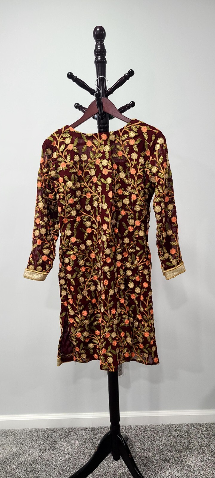 как выглядит Maroon Embroidered Tunic Dress for Women  Ethnic Indian Kurti фото