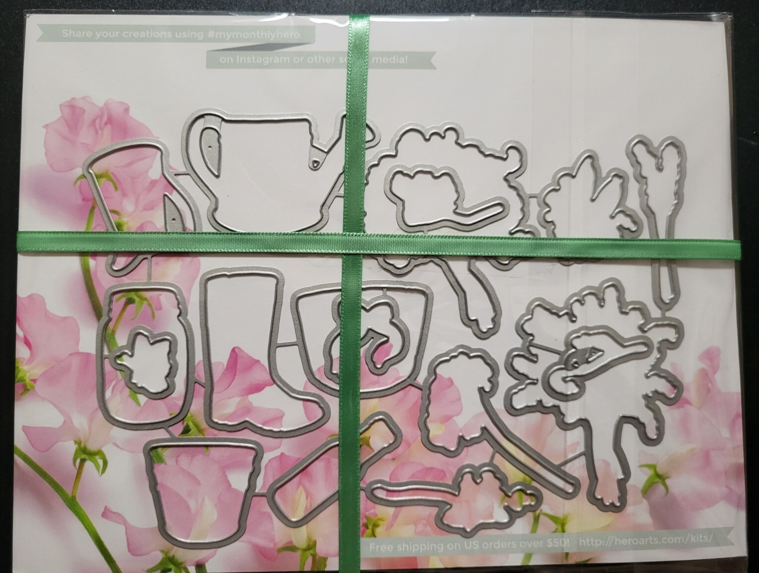 HERO ARTS My Monthly Hero Kit Stamp Die July 2017 Bouquets Flower Planters Boots