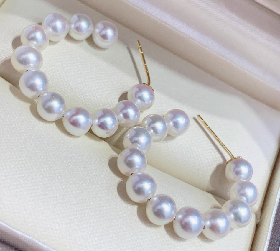 PERFECT AAA 4-5mm akoya white drop pearl earrings 14K GOLD hook earring