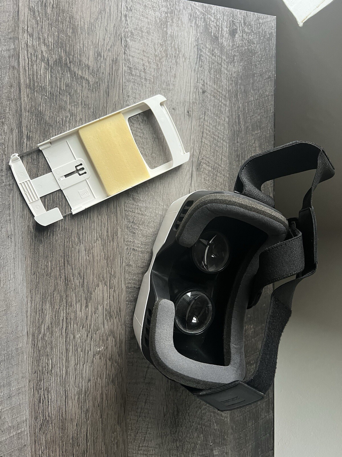 Zeiss VR One Plus virtual reality goggles with head strap and phone slider
