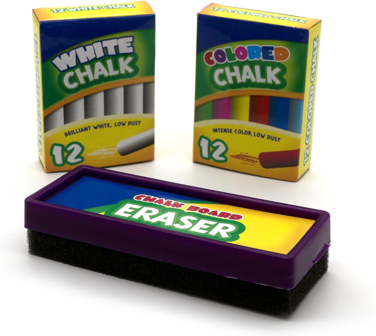 Emraw Eraser 12 White Chalk Dustless Chalk Non-Toxic 12 Color Chalkboard School