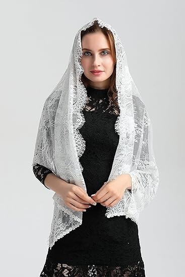как выглядит Lace Mantilla Veil Vintage Floral Lace Scarf White Triangle Wedding Veil Long... фото