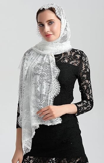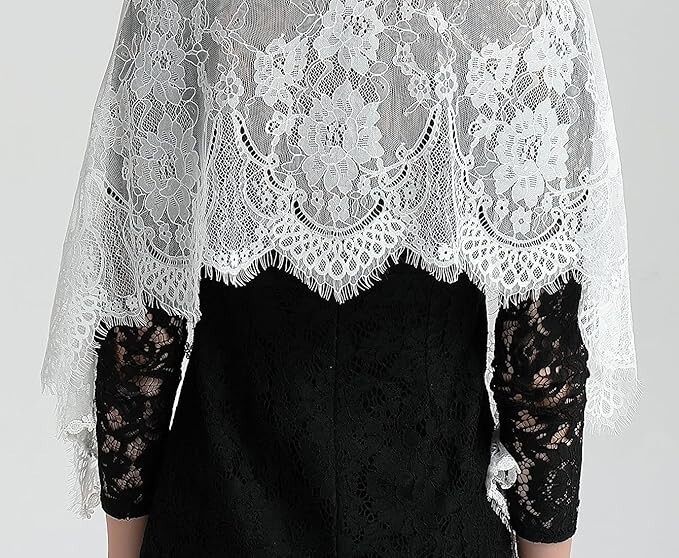 Lace Mantilla Veil Vintage Floral Lace Scarf White Triangle Wedding Veil Long...