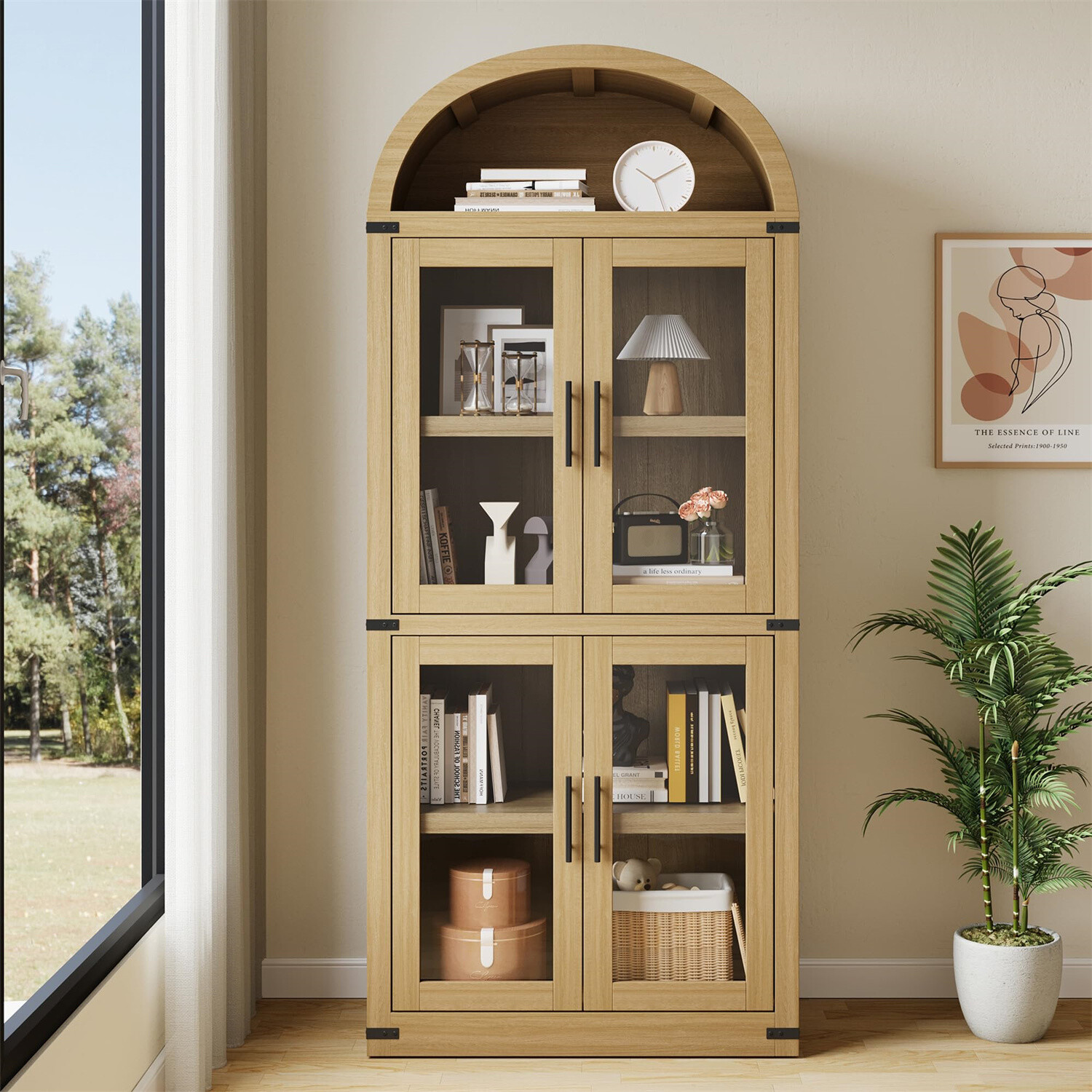 Arched Bookshelf with Doors Farmhouse Bookcase 15.83in Depth Display Storage