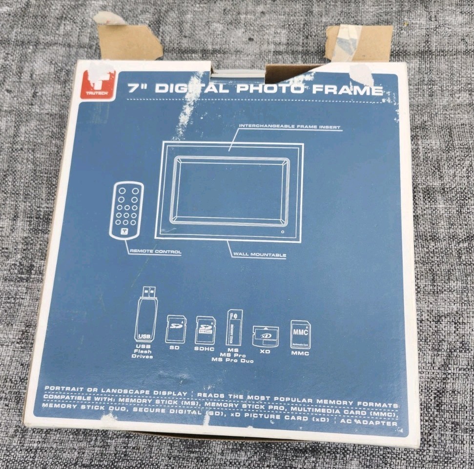 TRUTECH 7-Inch DIGITAL PHOTO FRAME Black/ White A60P0315 Used. Box Manual
