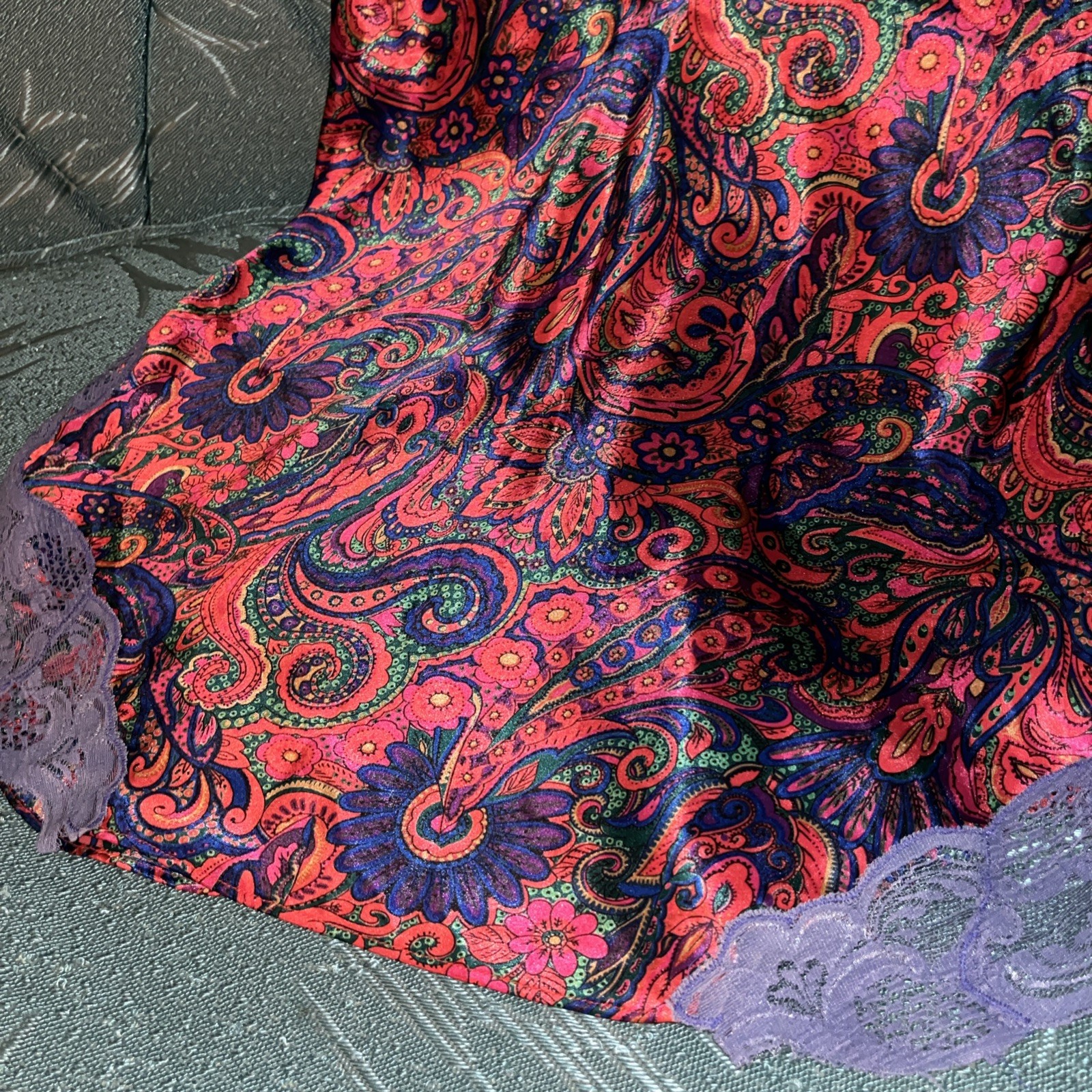 Vintage Victoria s Secret Gold Label Floral Paisley Slip Chemise Small Lace Trim