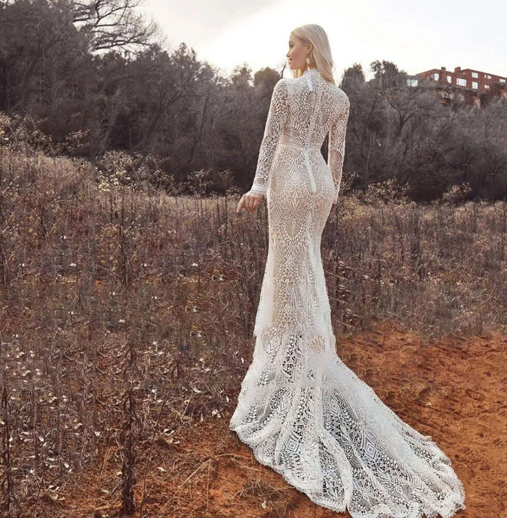 как выглядит Elegant Mermaid Bridal Gowns High Neck Long Sleeve Wedding Dresses Made Lace фото