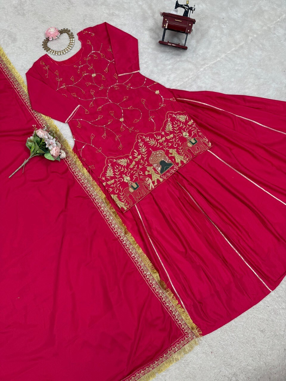 Stylish Natural Crepe Silk Top Lehenga With Red Dupatta For Indian Festival