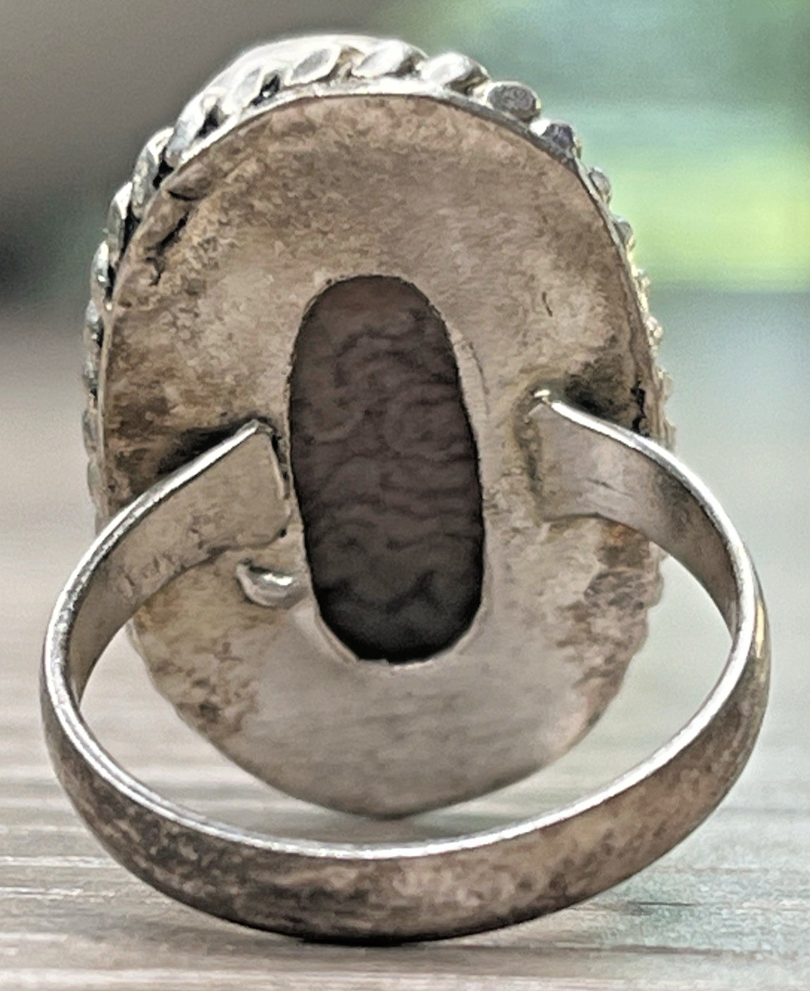 как выглядит Vintage Sterling 925 Rosita Jasper Oval Cabochon Braided Southwest Ring 5g SZ 6 фото