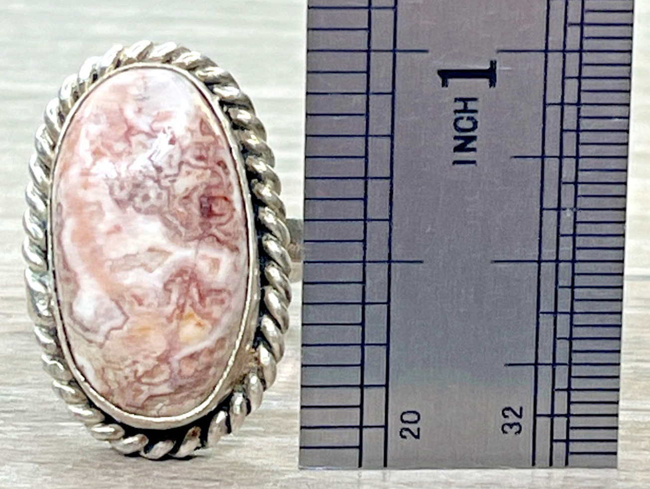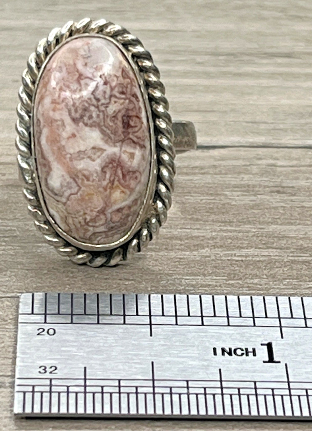 Vintage Sterling 925 Rosita Jasper Oval Cabochon Braided Southwest Ring 5g SZ 6