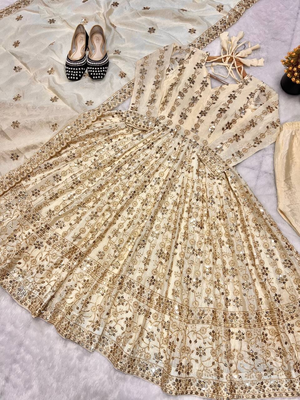 Readymade Pure Chinnon Silk Gown Bottom With Cream Dupatta For Ethnic Wear