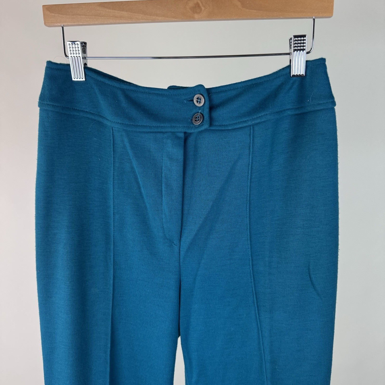 Vintage 70s Sears Blue Stretch Pants Size 12 High Rise Wide Leg Flare
