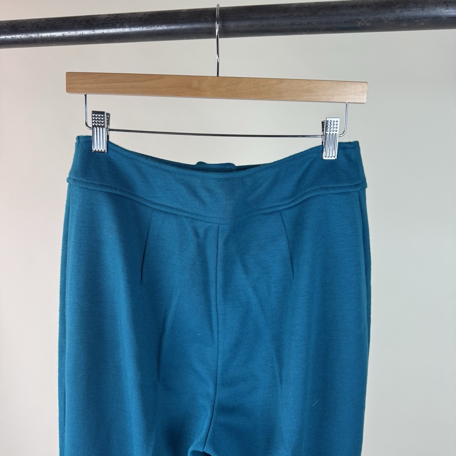 как выглядит Vintage 70s Sears Blue Stretch Pants Size 12 High Rise Wide Leg Flare фото