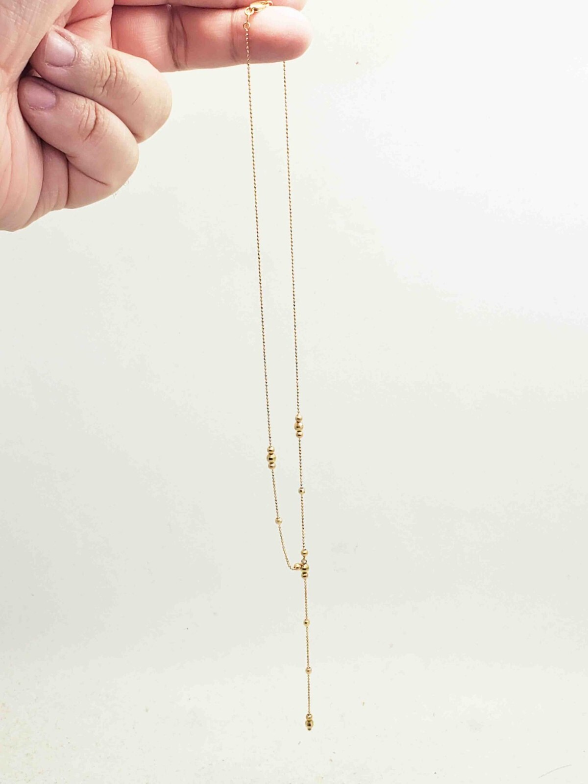 Y-Drop Style Bead Station Chain Necklace 14k Gold