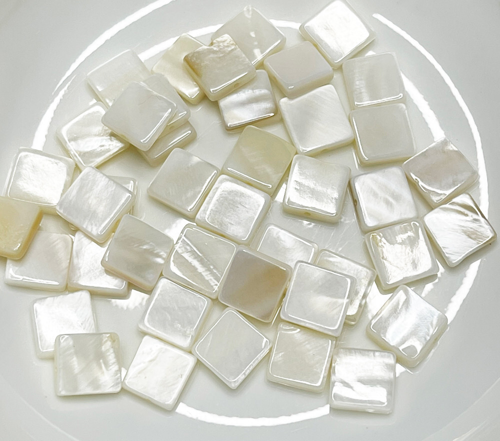 Mother of Pearl White Square 9mm Beads - 40 Beads